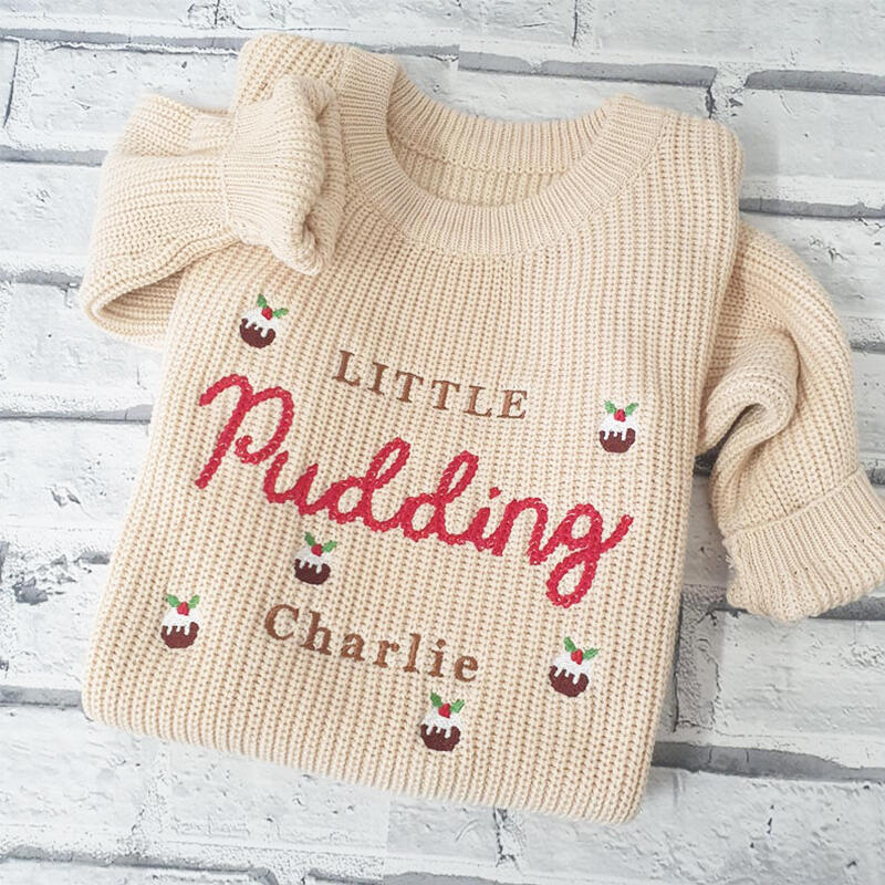 Personalized Handmade Name Sweater with Pudding Pattern Unique Gift for Kids