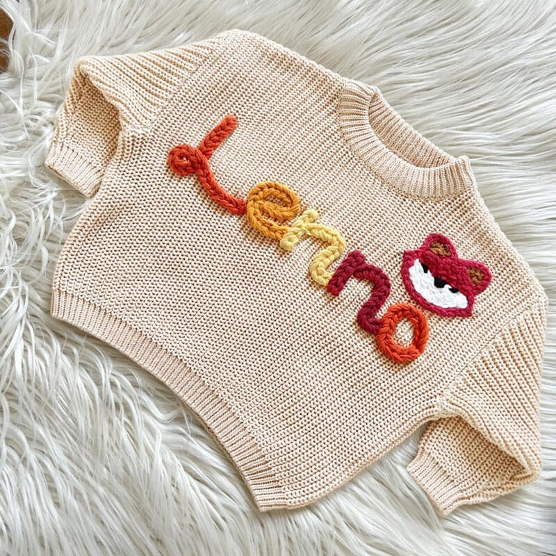 Personalized Handmade Name Sweater with Random Color Text Creative Present for Kids