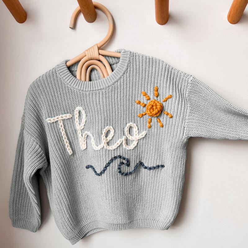 Personalized Handmade Name Sweater with Sun Pattern Precious Gift for Children