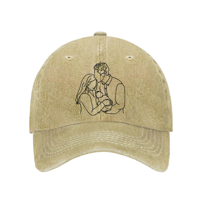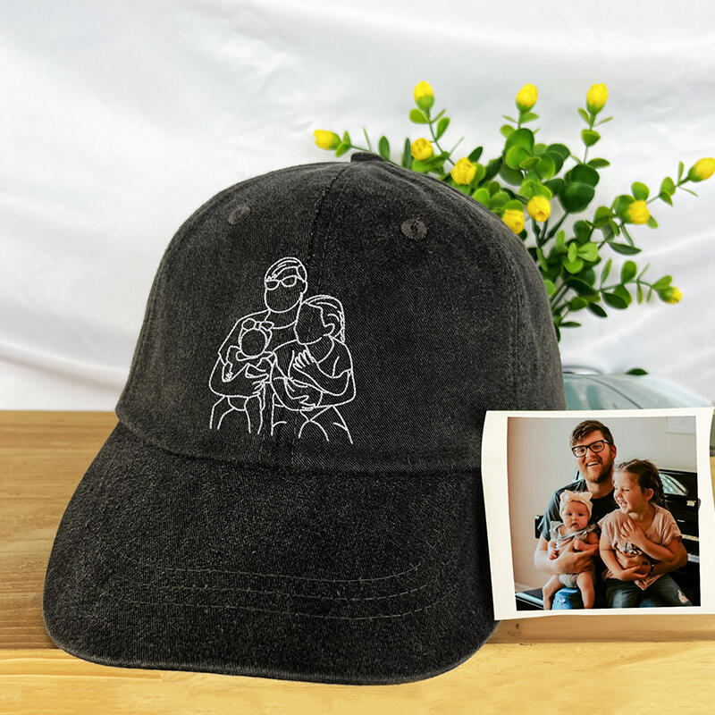 Personalized Hat Custom Embroidered Family Photo Line Design Great Gift for Dear Parents