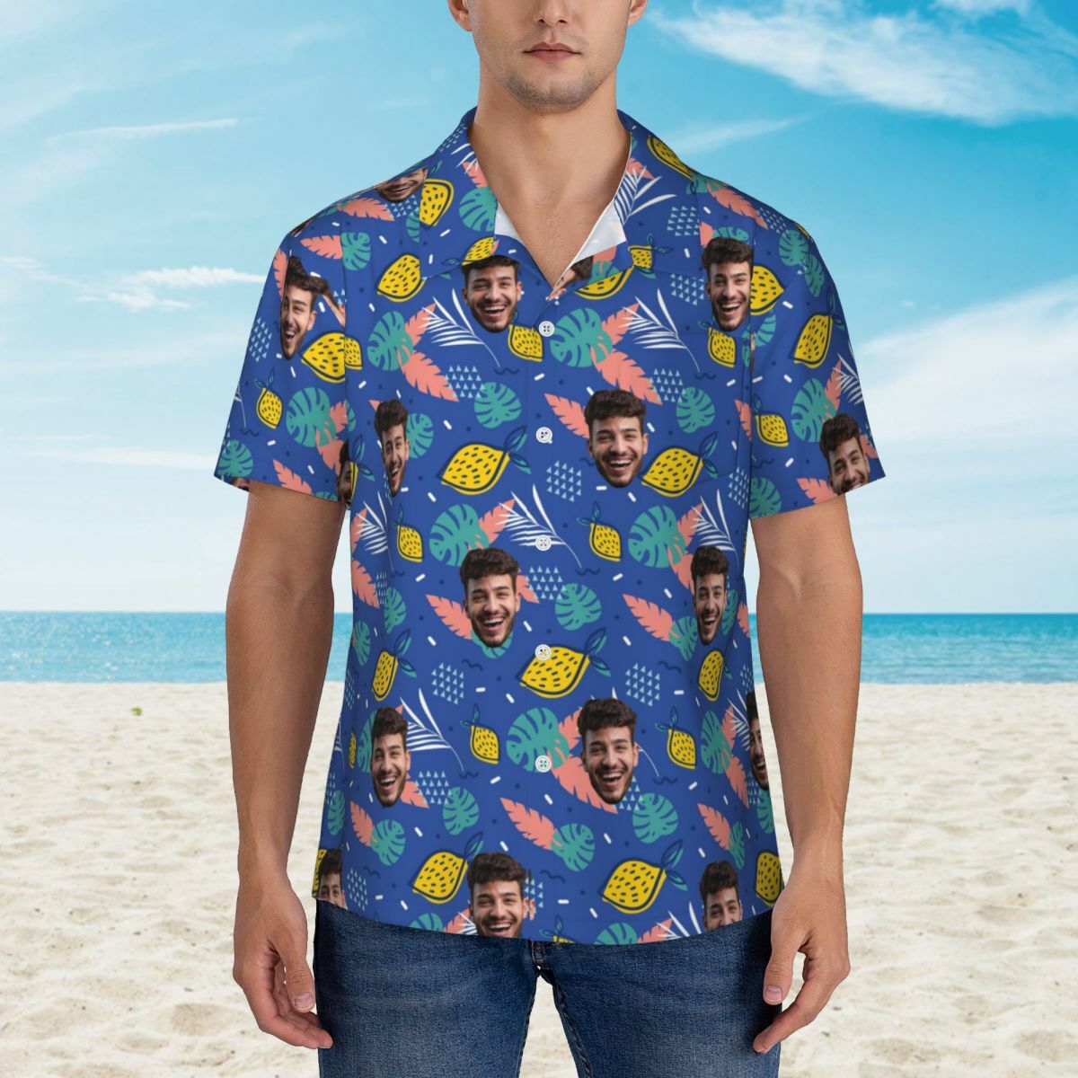 Introducing our Hawaiian shirts, the perfect blend of style and personalization for your wardrobe. Elevate your look by customizing these shirts with your loved one's face photos, making them a thoughtful and unique gift for husbands, dads, grandpas, friends, and family members.