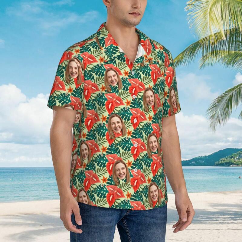 Introducing our Hawaiian shirts, the perfect blend of style and personalization for your wardrobe. Elevate your look by customizing these shirts with your loved one's face photos, making them a thoughtful and unique gift for husbands, dads, grandpas, friends, and family members.
