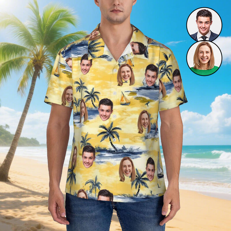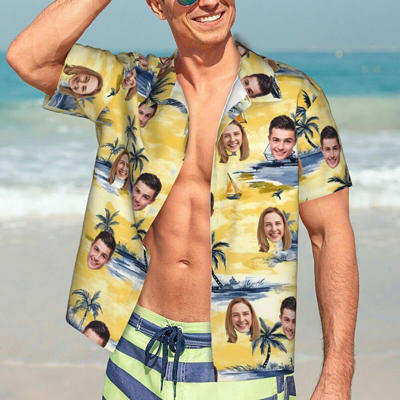 Introducing our Hawaiian shirts, the perfect blend of style and personalization for your wardrobe. Elevate your look by customizing these shirts with your loved one's face photos, making them a thoughtful and unique gift for husbands, dads, grandpas, friends, and family members.