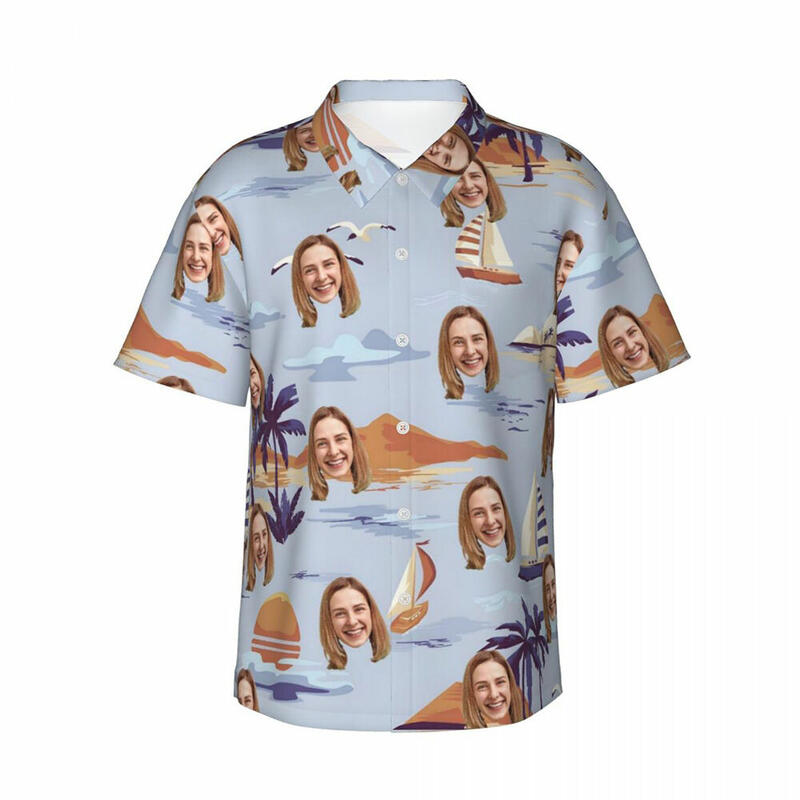 Personalized Hawaiian Shirt with Sea Sailing Print Custom Photo Vacation Gift for Couples