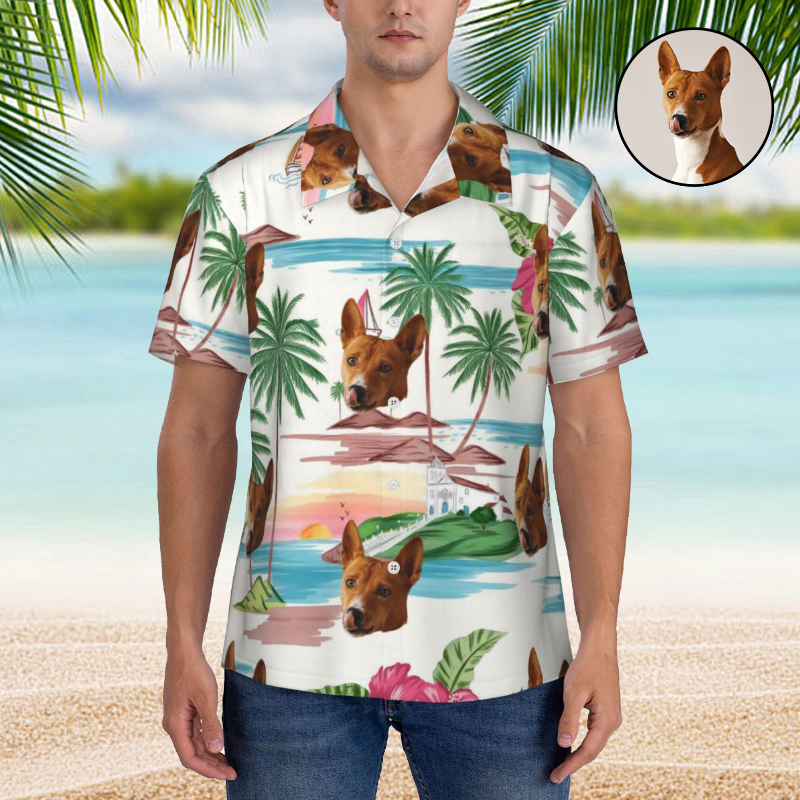 Personalized Hawaiian Shirt with Sunset Print Makes a Great Holiday Gift for Pet Lovers