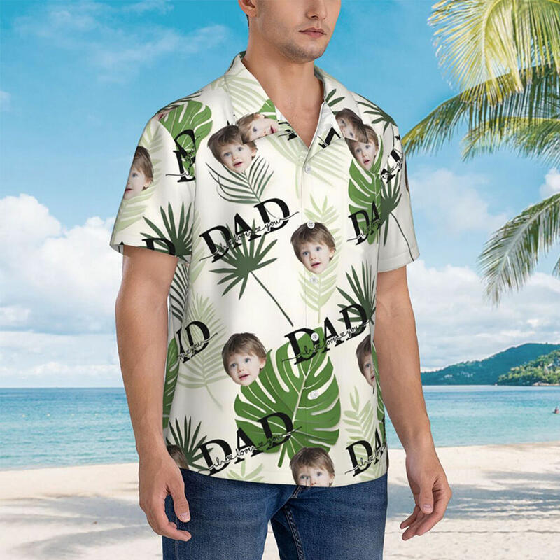 Personalized Hawaiian Shirts Custom Made with Kid Photo Casual Tops Holiday Gifts for Dad