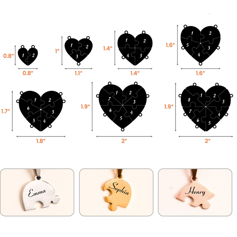 Personalized Heart Name Puzzle Necklace Warm Gift For Family Members