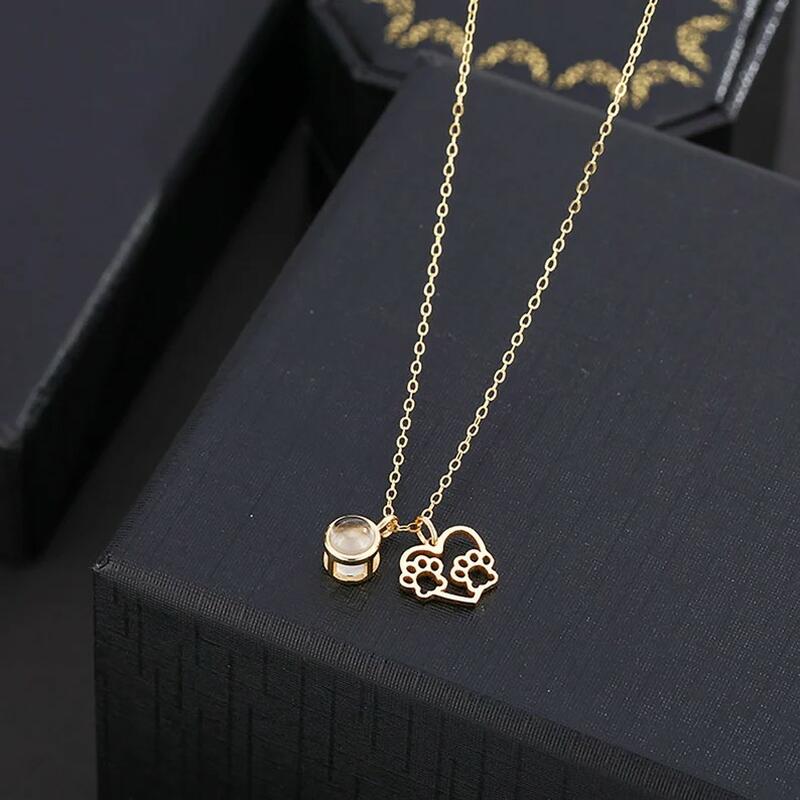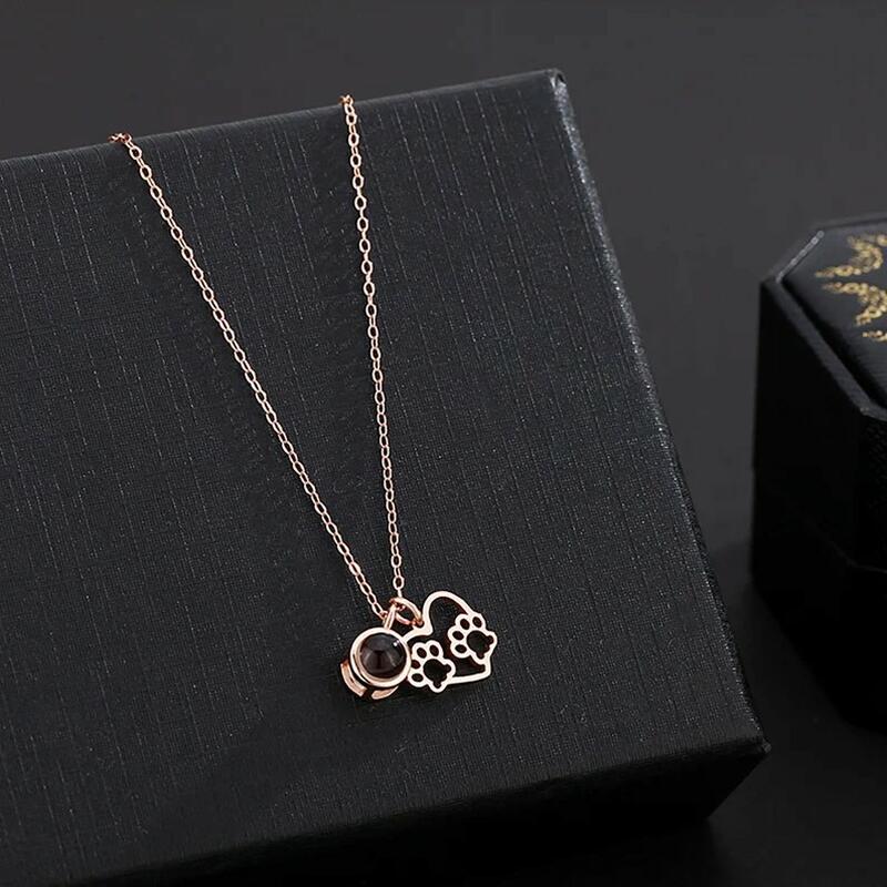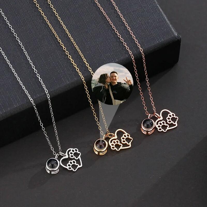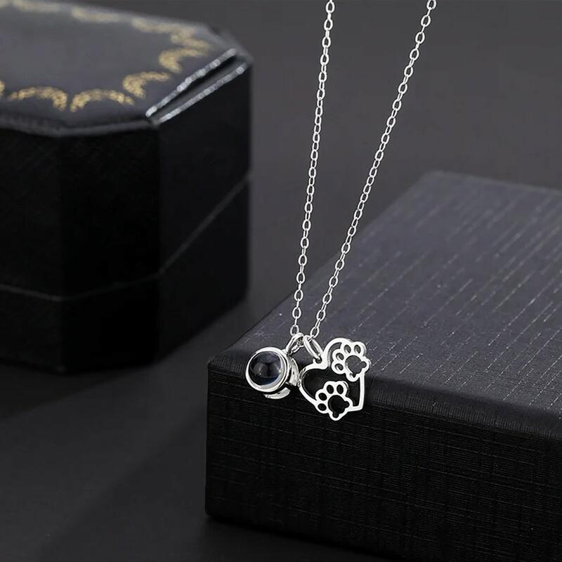 Personalized Heart Photo Projection Necklace With Cute Paw Prints for Pet Lover