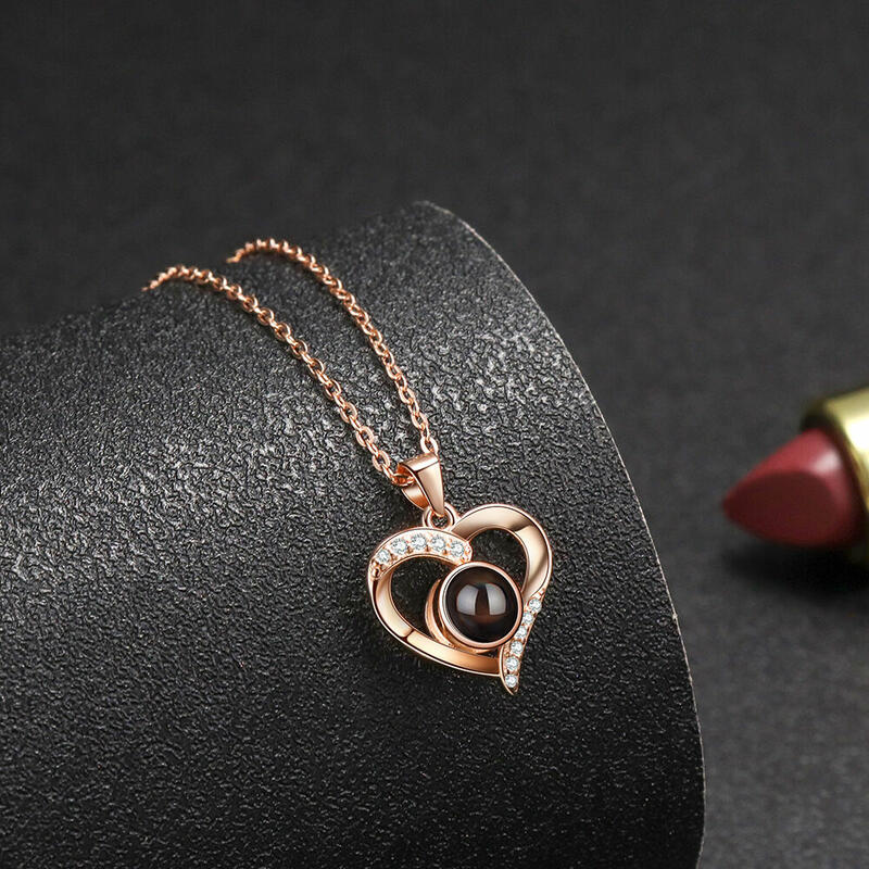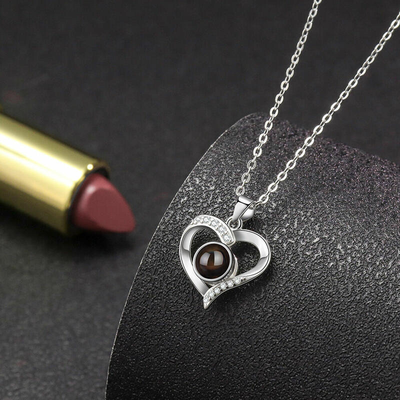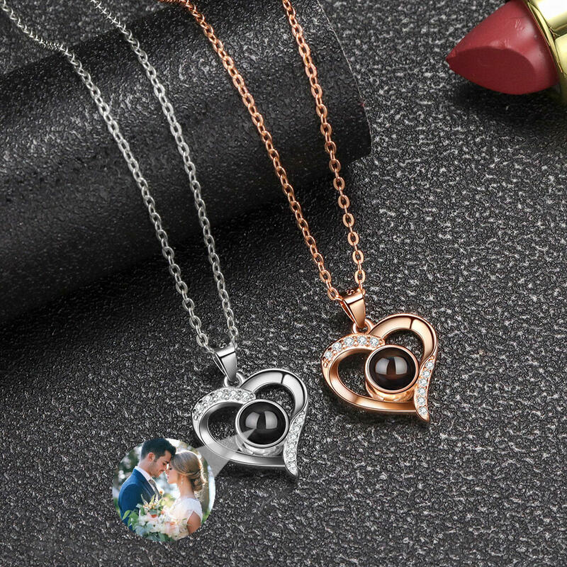 Personalized Heart Photo Projection Necklace With Diamonds for Girlfriend
