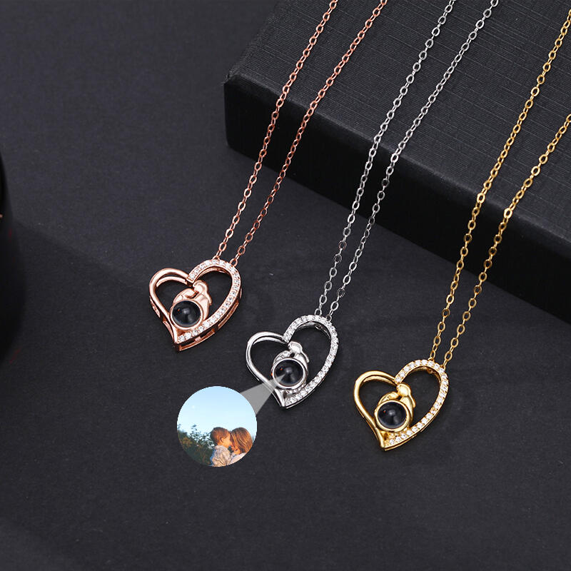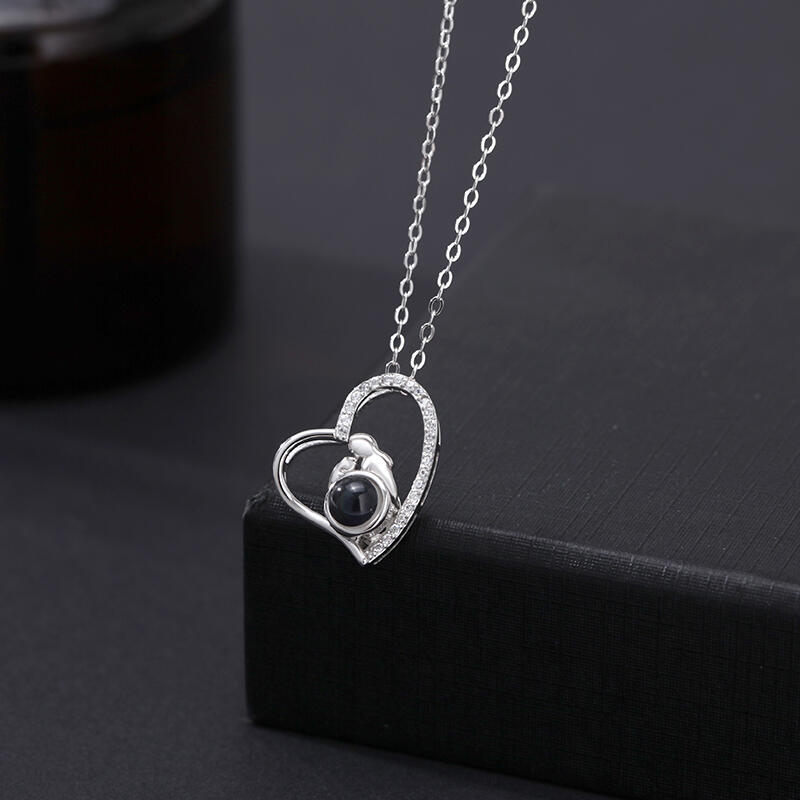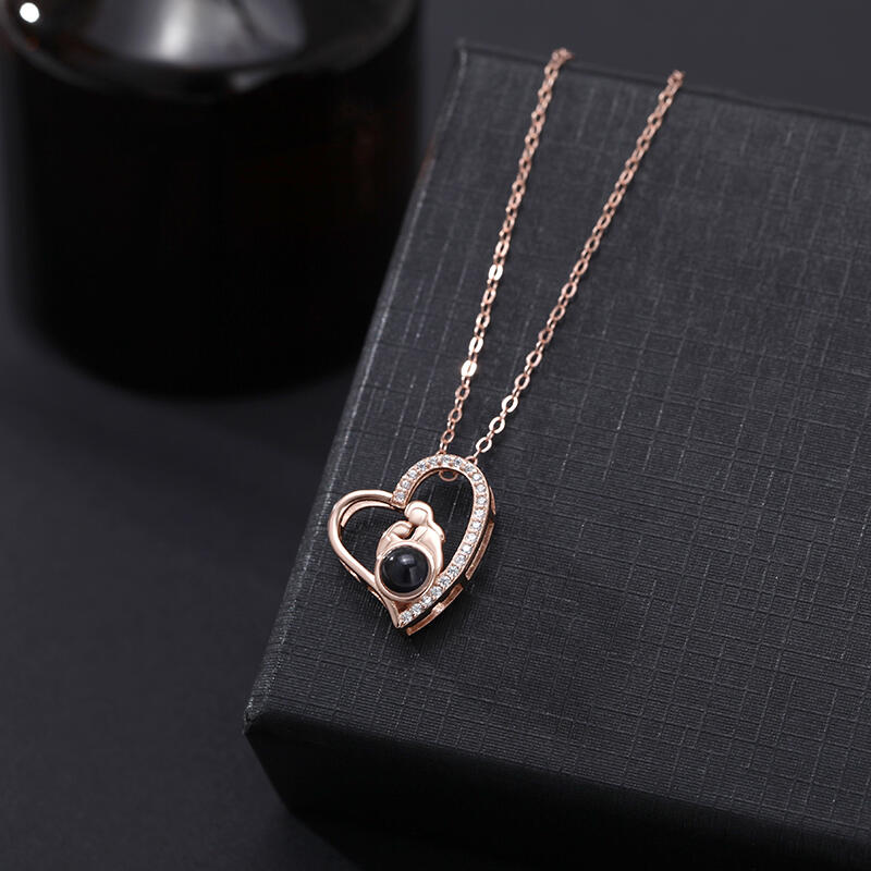 Personalized Heart Photo Projection Necklace With Mom's Hug for Mother