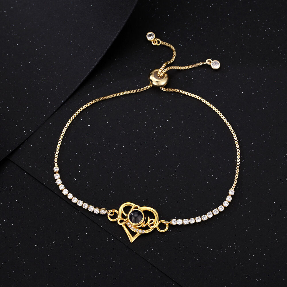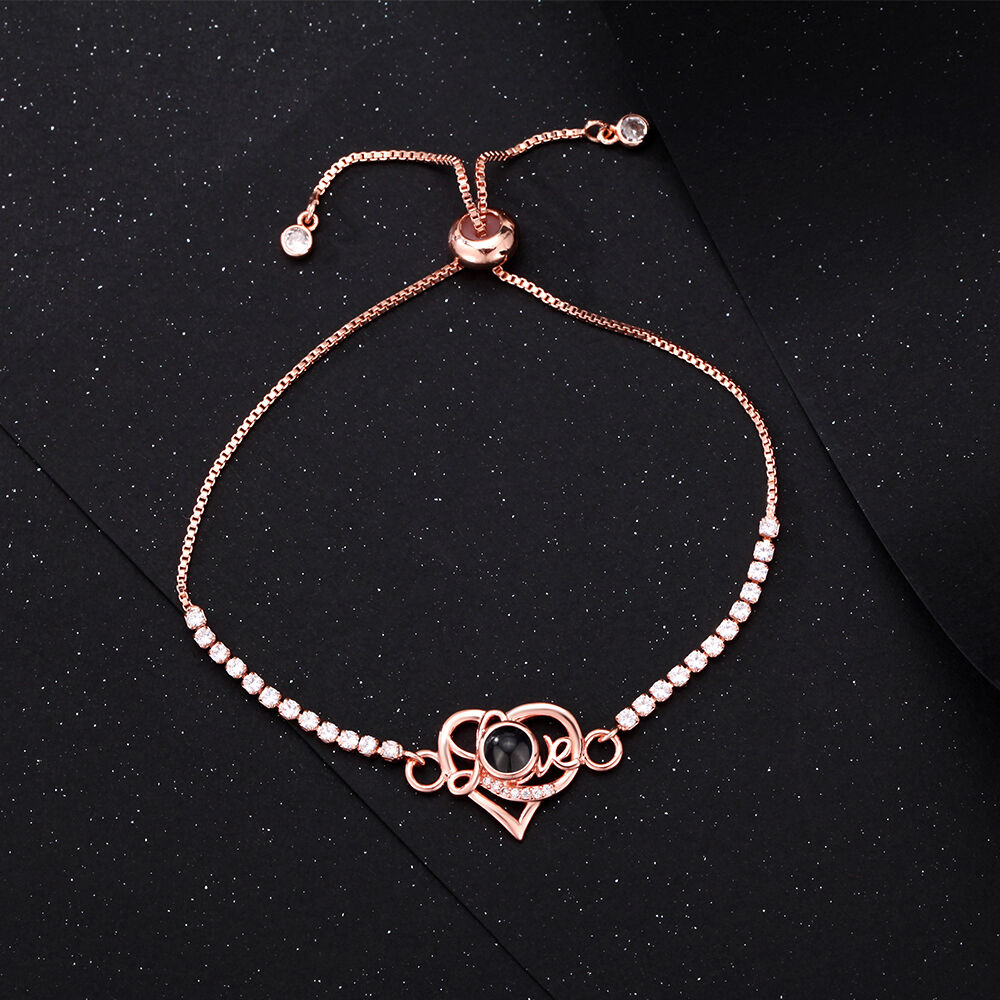 Personalized Heart Shape Projection Bracelet With Diamonds Exquisite Birthday Gift