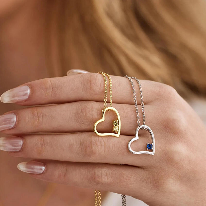 Personalized Heart Shaped Birthstone Necklace Beautiful Gift for Wife
