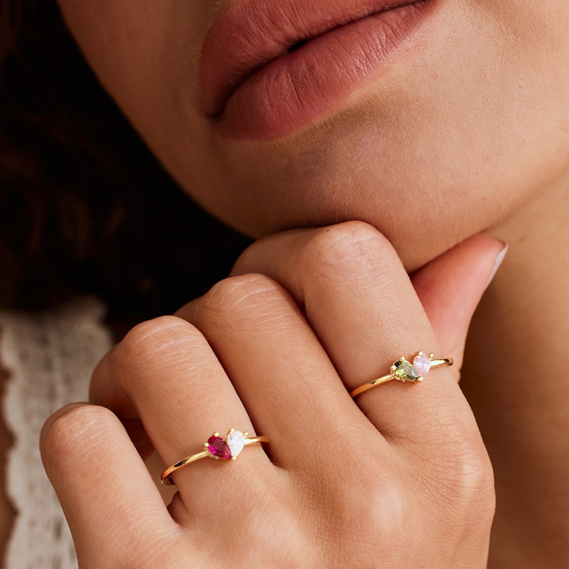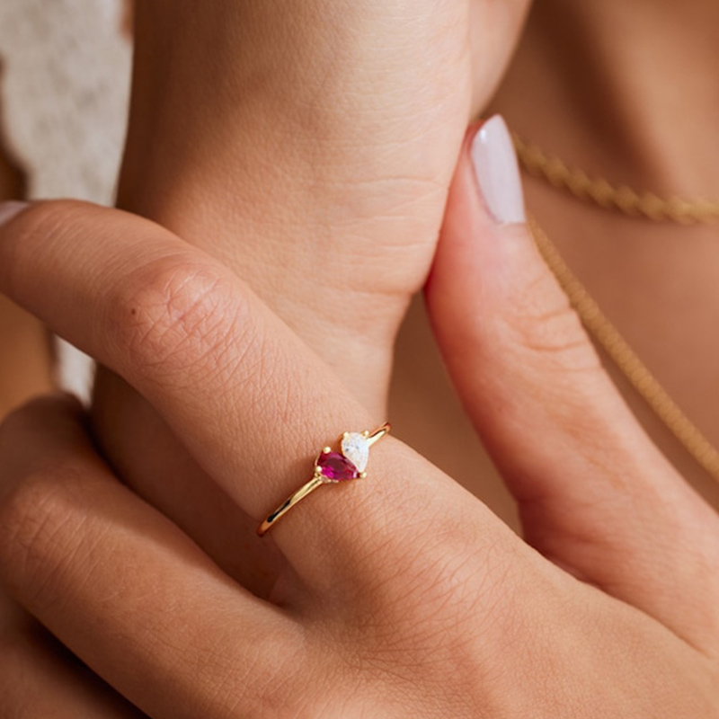 Personalized Heart-Shaped Birthstone Ring Exquisite Gift For Girls