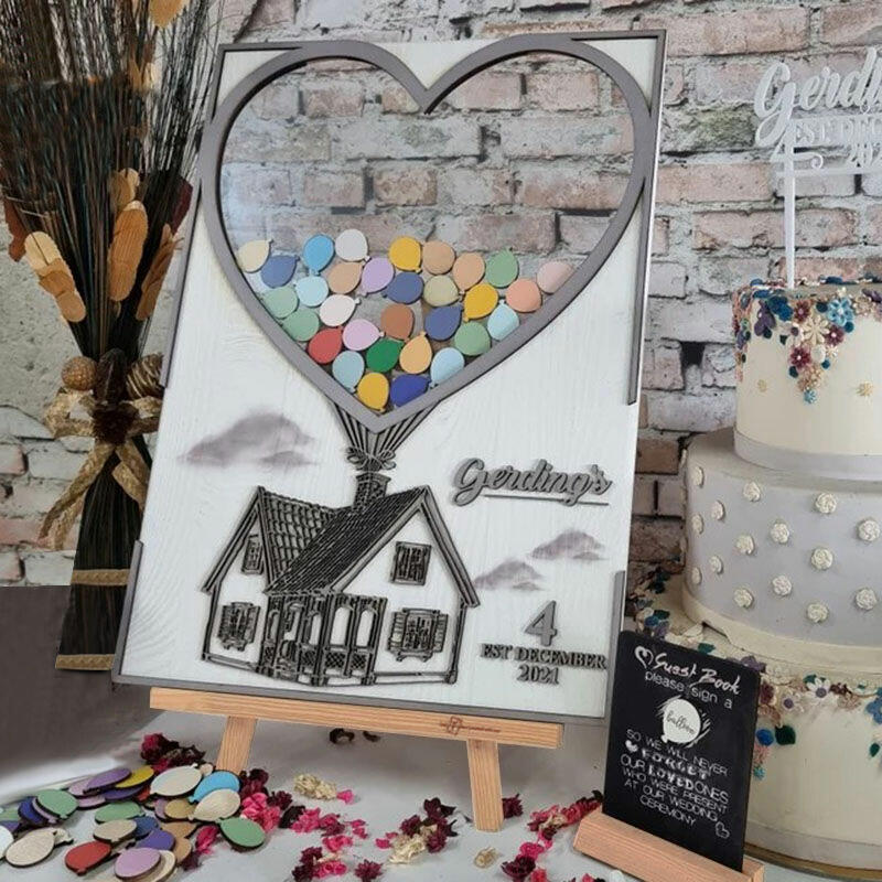 Personalized Heart Shaped Colorful Balloons Wooden Acrylic Custom Name Guest Book