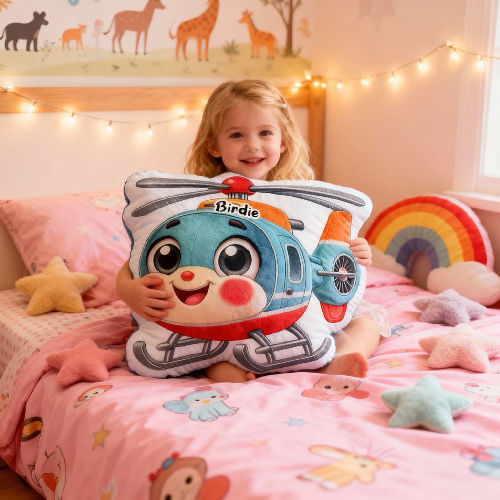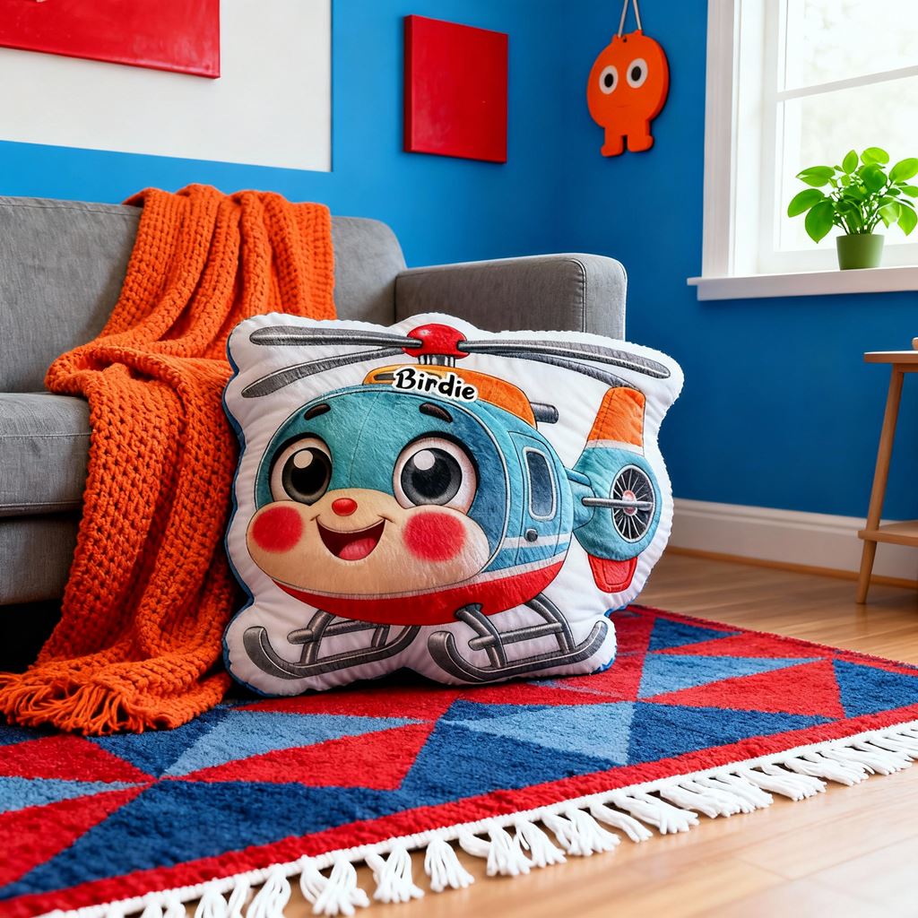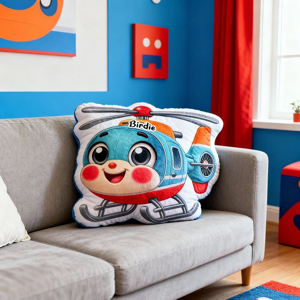 Personalized Helicopter Print Throw Pillow Cartoon Transportation Theme Pillow for Kid