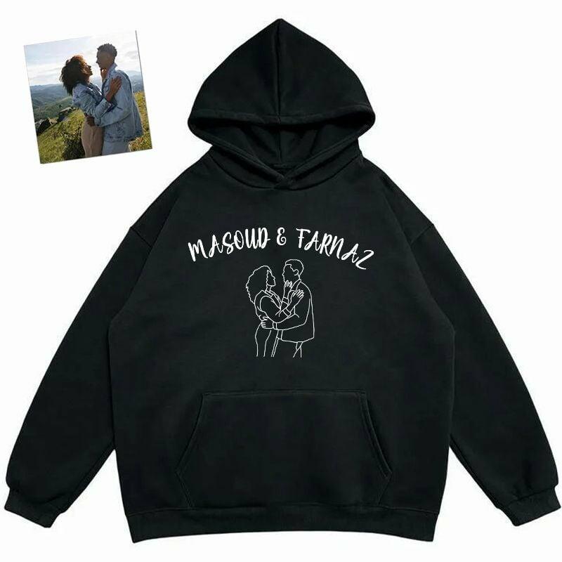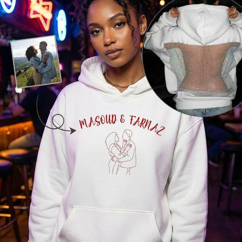 Personalized Hoodie Backless Openwork Sheer Custom Couple Name and Photo Line Design Sexy Voguish Gift for Her