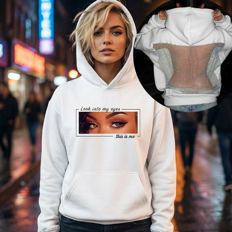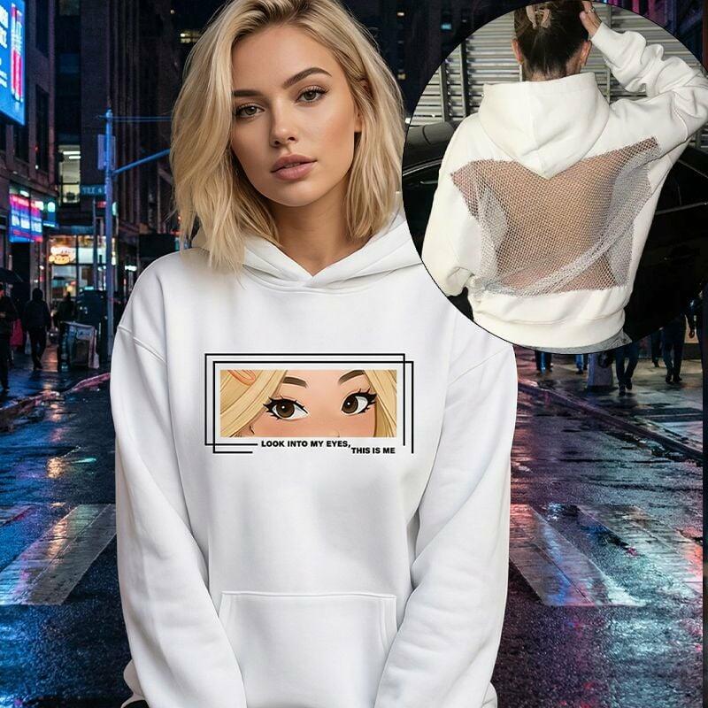 Personalized Hoodie Backless Openwork Sheer Custom Eye Cartoon Fashion Design Sexy Gift for Girlfriends