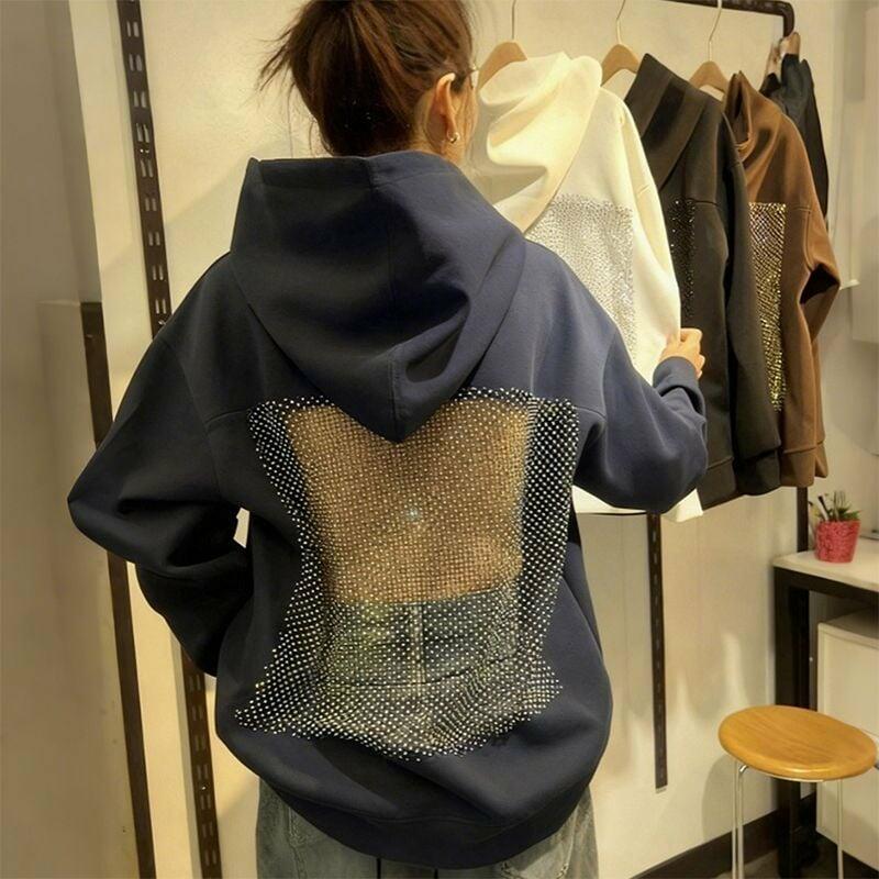 Designed for perfect seasonal harmony, it keeps the front cozy and warm while flaunting a chic, figure-enhancing back—ideal for fall and winter layering. Blending unisex modernity with bold streetwear flair, this hoodie caters perfectly to fashion-forward women who love to make a statement.