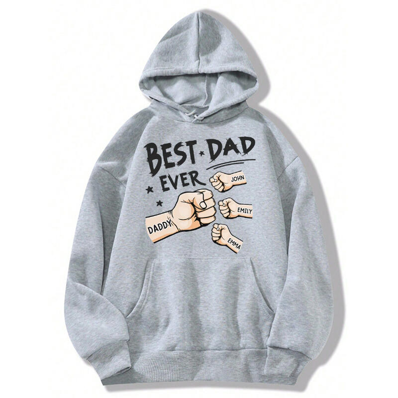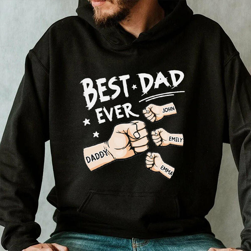 Personalized Hoodie Best Dad Ever Fist Bump Custom Names Design Perfect Gift for Father's Day