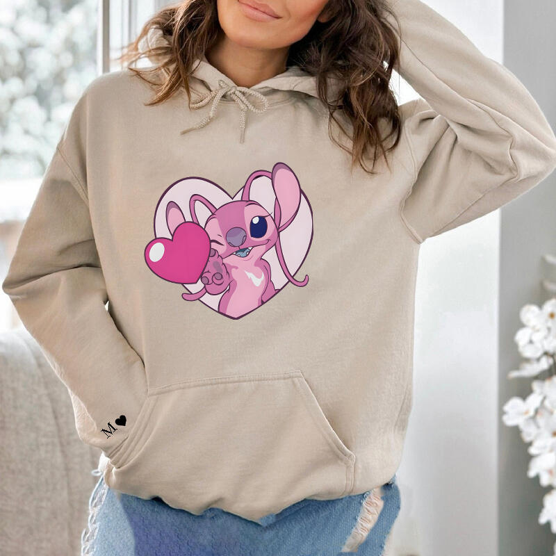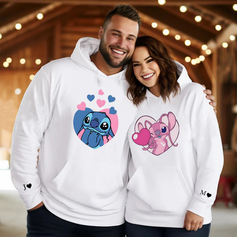 Personalized Hoodie Cartoon Stitch and Angel Heart Design Attractive Valentine's Day Gift for Lovers