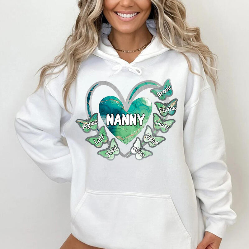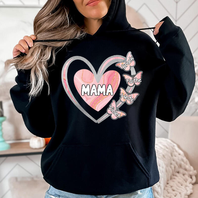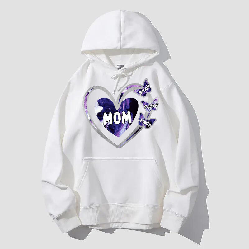 Personalized Hoodie Custom Colorful Glitter Heart Butterfly Kids Design Exquisite Mother's Day Gift