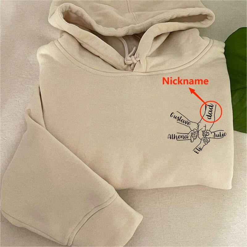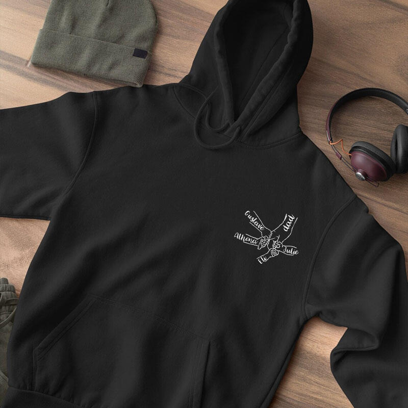 Personalized Hoodie Custom Embroidered Names with Hold Your Hand Pattern Gift for Family