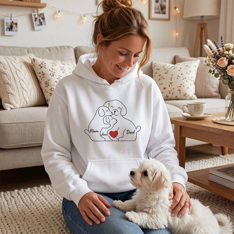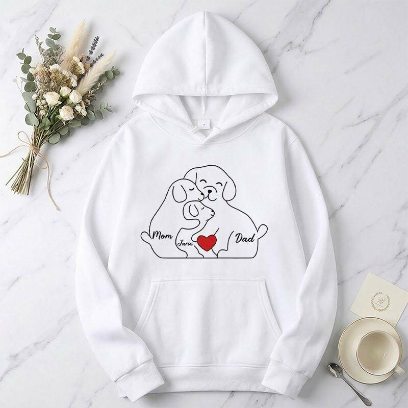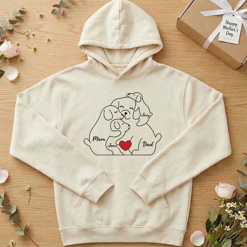 Personalized Hoodie Custom Family Names Cute Dog Line Puzzle Design Precious Gift for Mother's Day