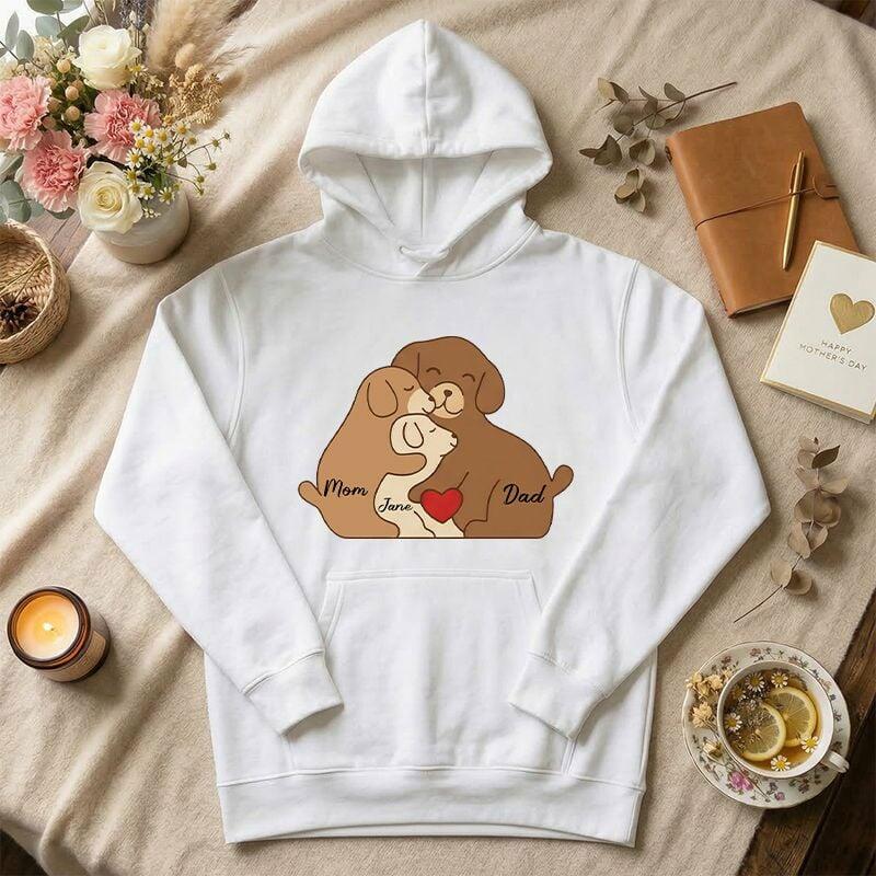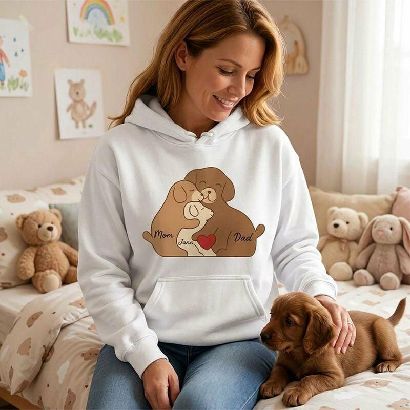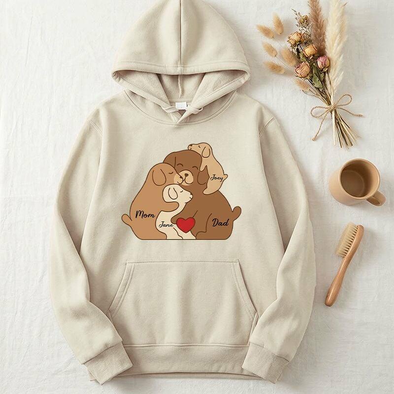 Personalized Hoodie Custom Family Names Cute Dog Puzzle Pattern Design Adorable Gift for Mother's Day