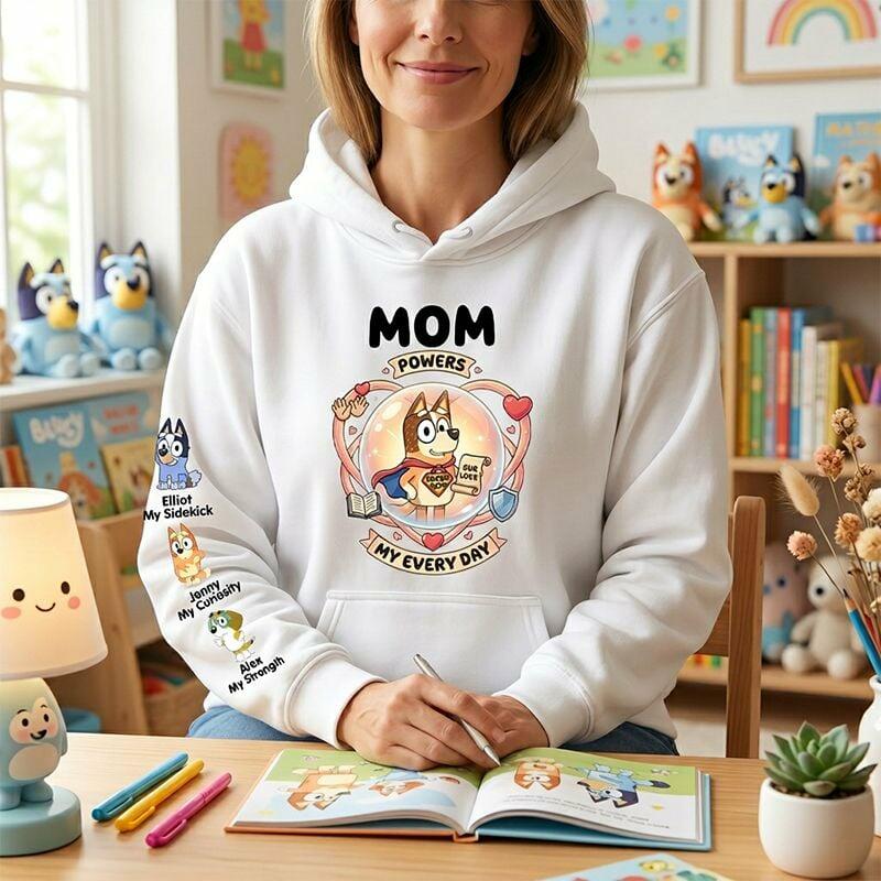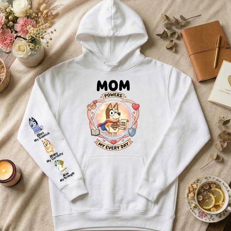 Personalized Hoodie Custom Kids Cartoon Pattern Mom Powers Cool Design Funny Gift for Mother's Day