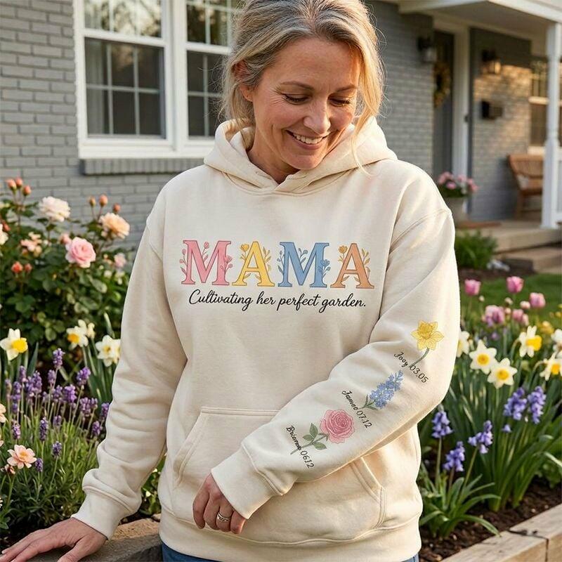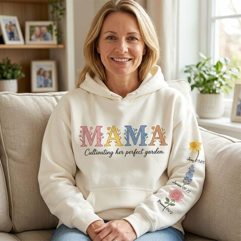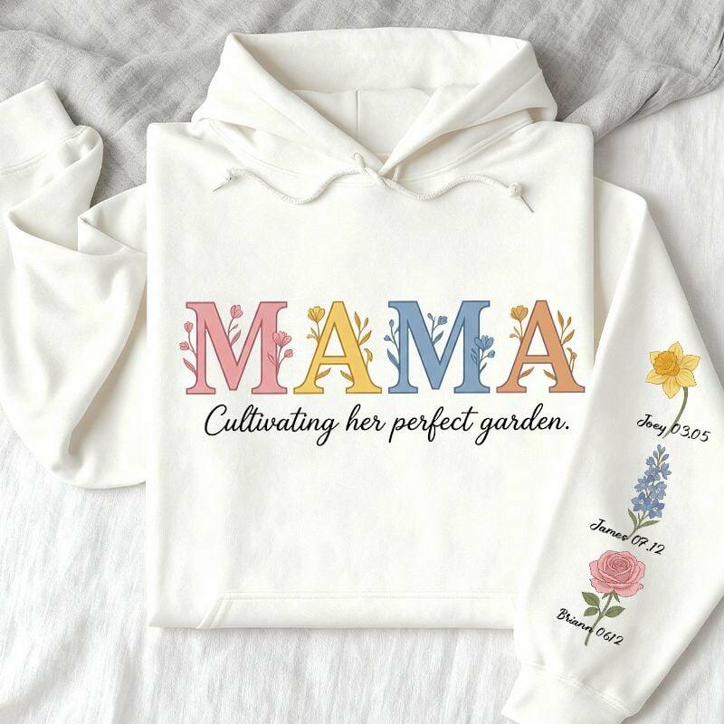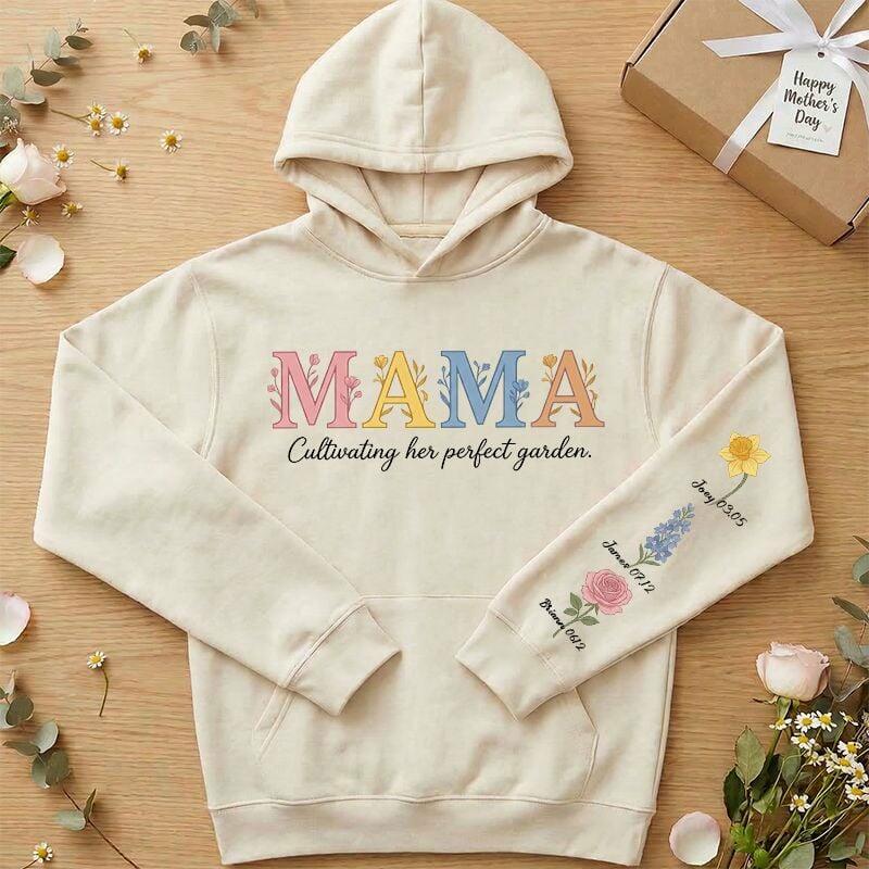 Personalized Hoodie Custom Mama Floral Text with Birth Flower Design Perfect Gift for Mother's Day