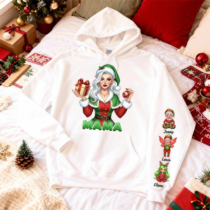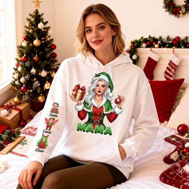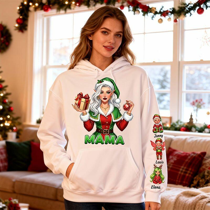 Personalized Hoodie Custom Retro Mama with Kids Pattern Design Christmas Gift for Dear Mom