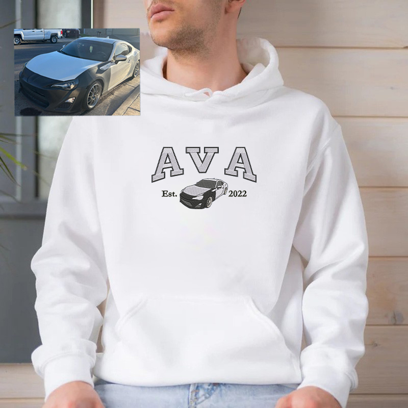 Personalized Hoodie Embroidered Car Color Photo Design Custom Title Attractive Gift for Car Lovers