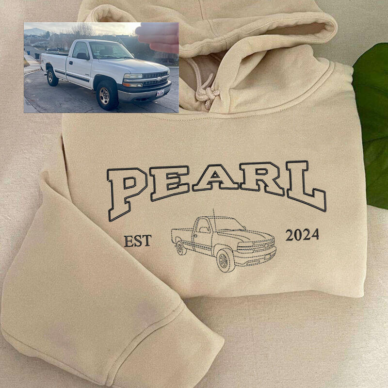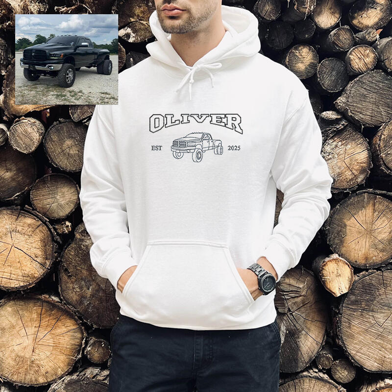 Personalized Hoodie Embroidered Car Photo Line Design Custom Name Attractive Gift for Car Lovers