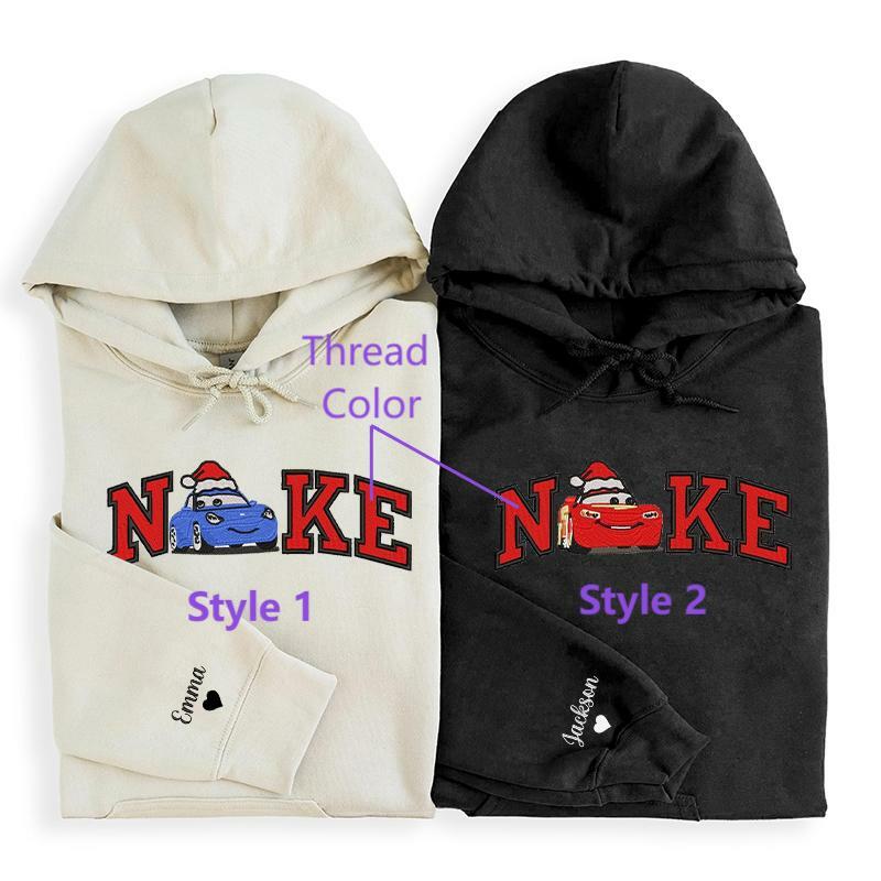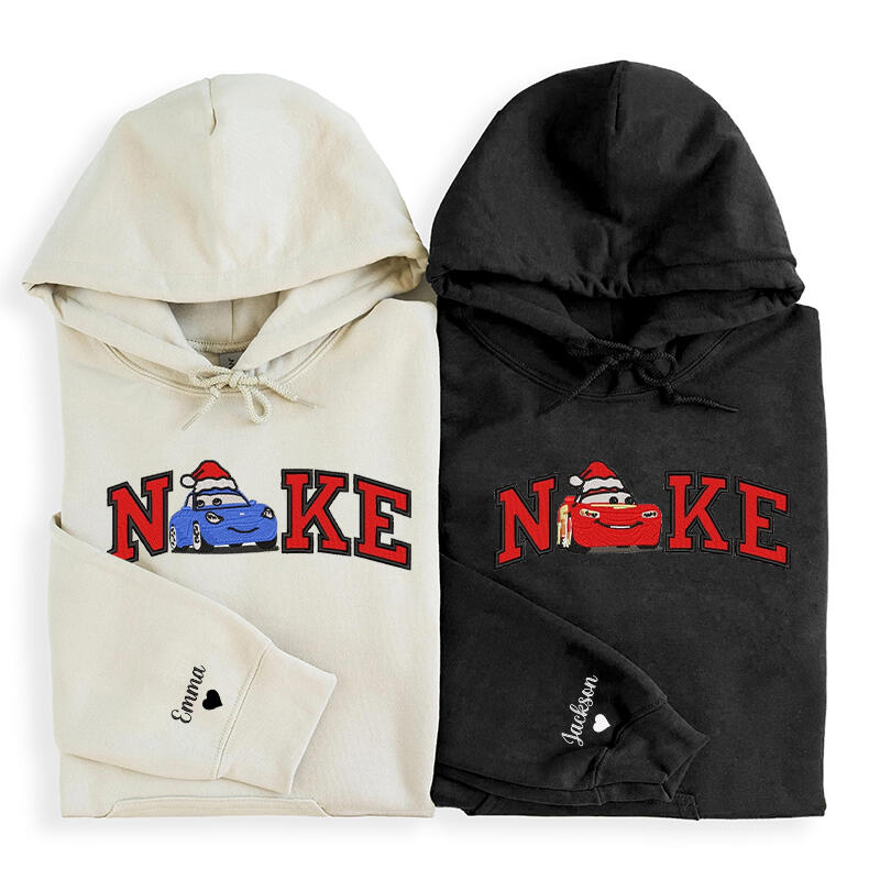 Personalized Hoodie Embroidered Cars Mcqueen and Sally Couple Design Great Christmas Gift for Lovers