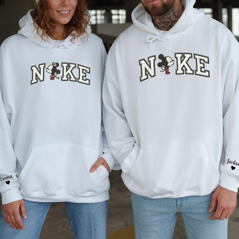 Personalized Hoodie Embroidered Cartoon Mouse Couple Kissing Design Valentine's Day Gift for Lovers