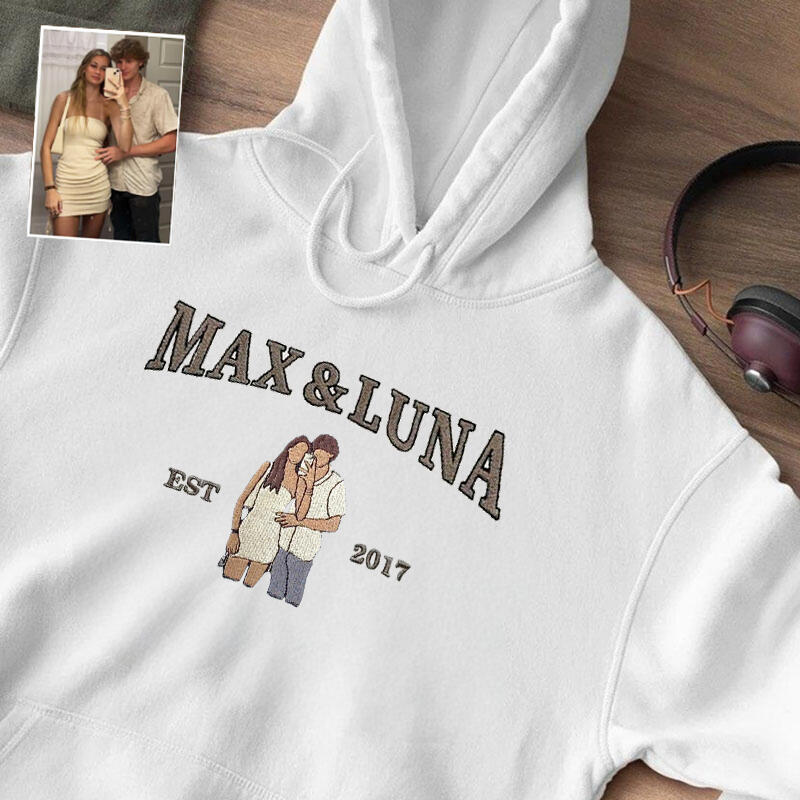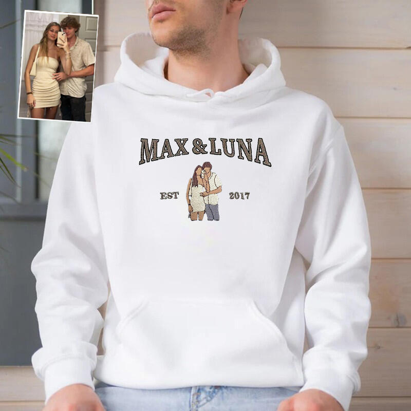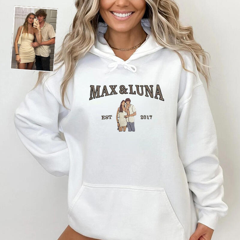Personalized Hoodie Embroidered Custom Couple Photo and Names Perfect Valentine's Day Gift