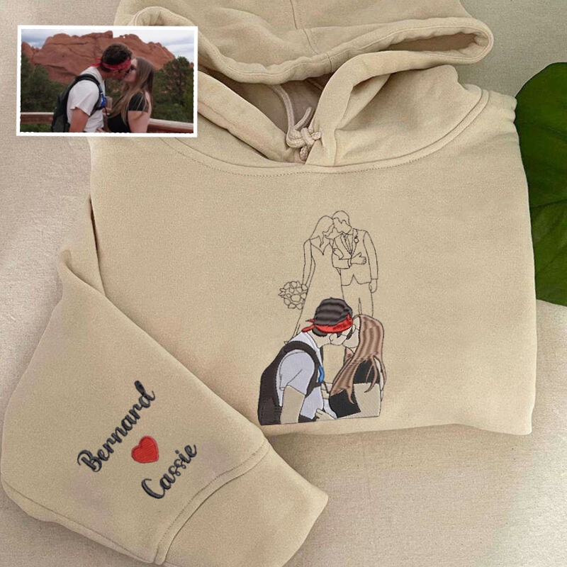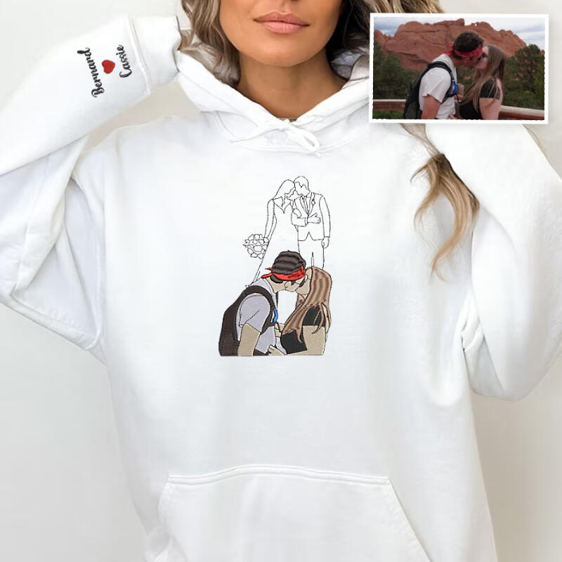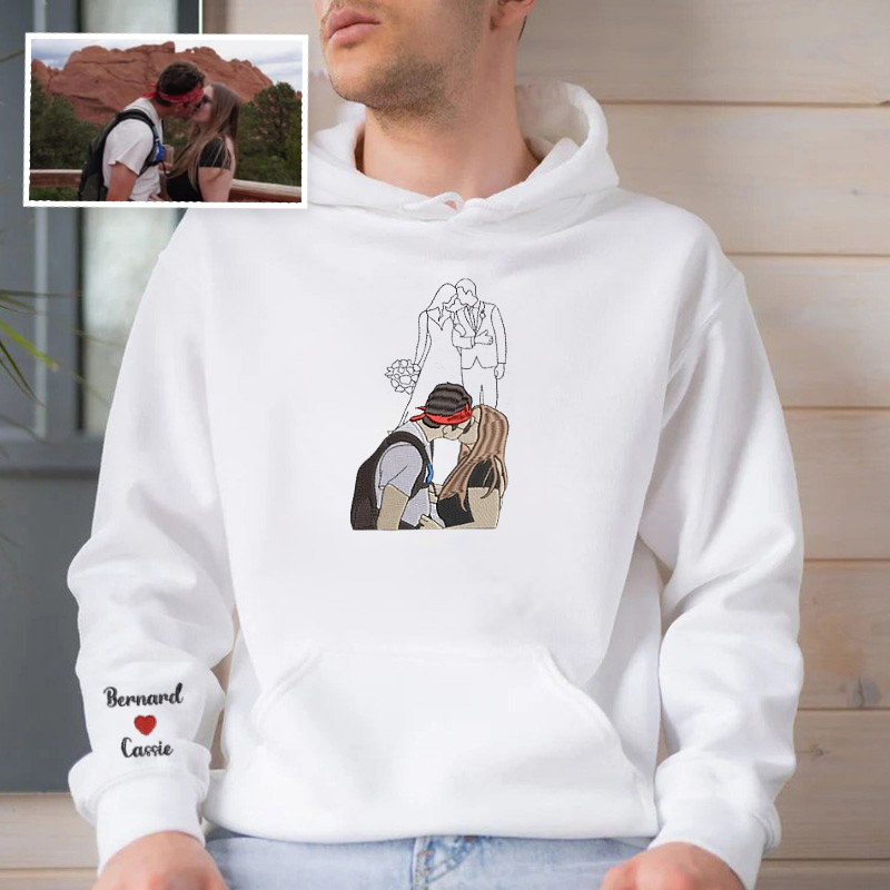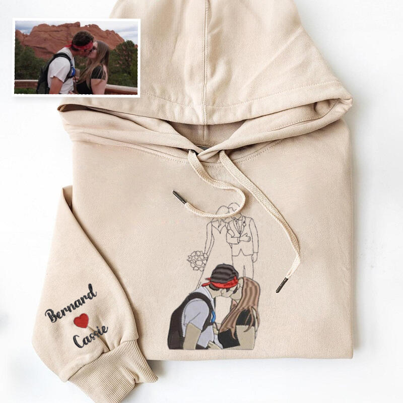 Personalized Hoodie Embroidered Custom Couple Photos Color and Outline Design Perfect Gift for Lovers