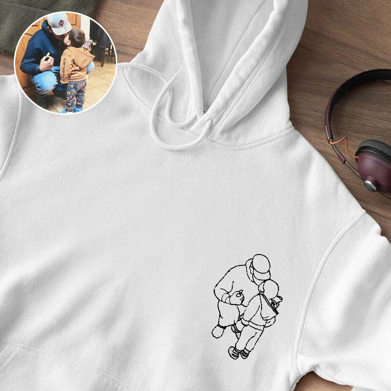 Personalized Hoodie Embroidered Custom Dad and Kids Photo Unique Design Perfect Father's Day Gift