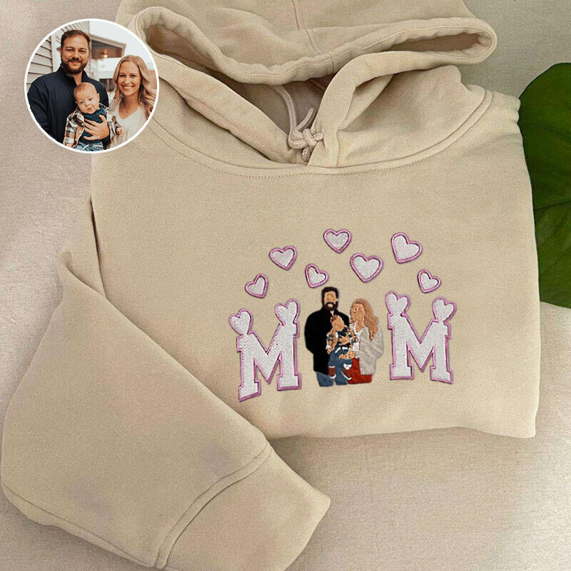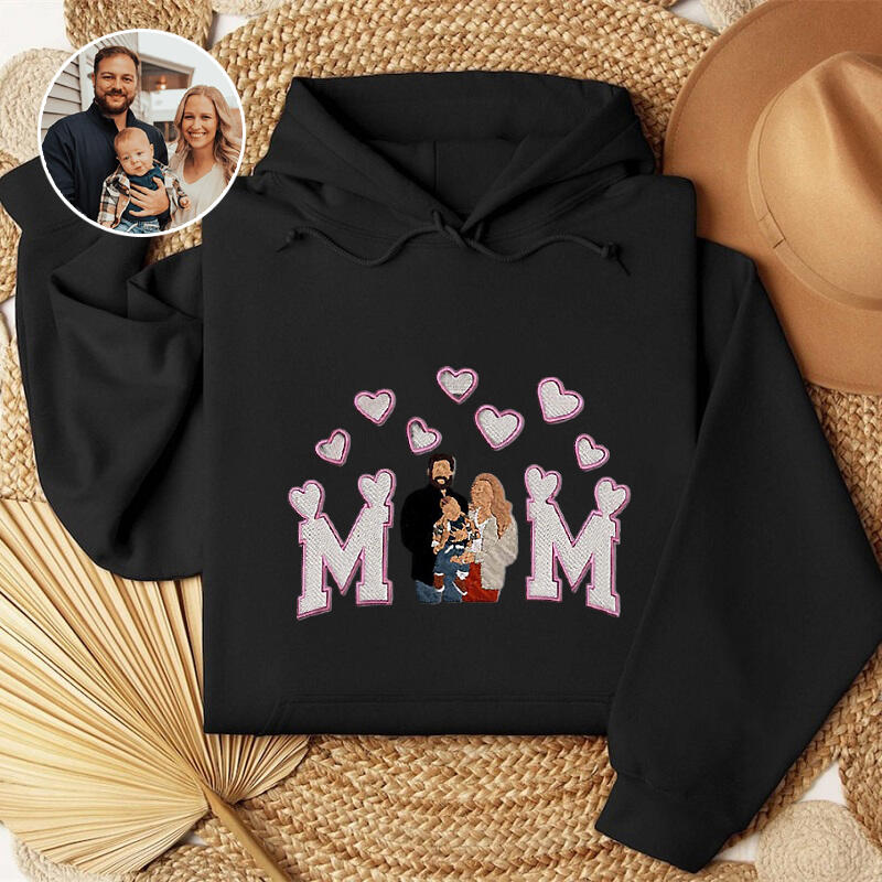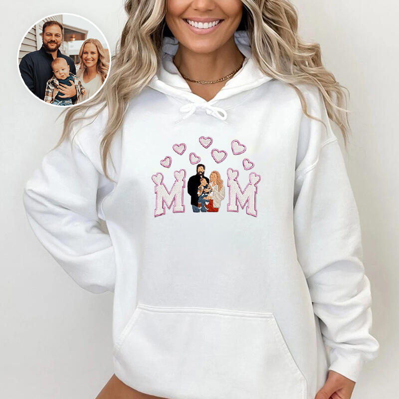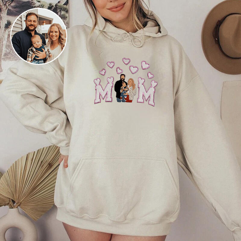 Personalized Hoodie Embroidered Custom Family Photo Mom Heart Design Exquisite Gift for Mother's Day