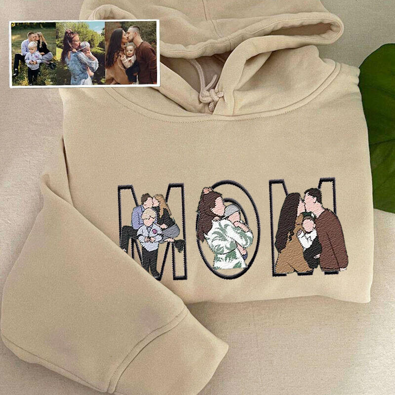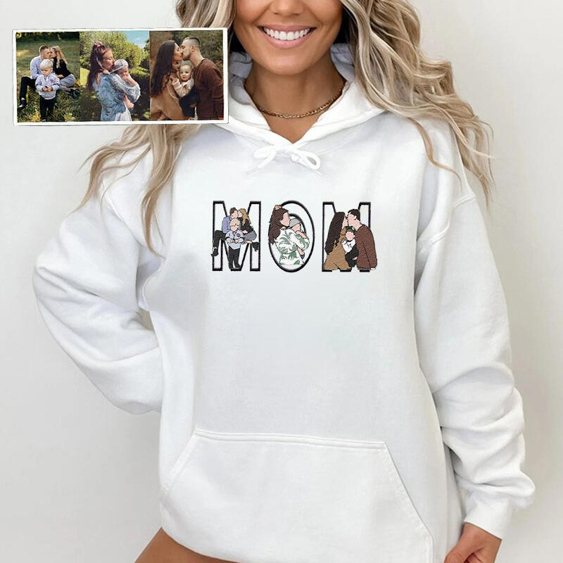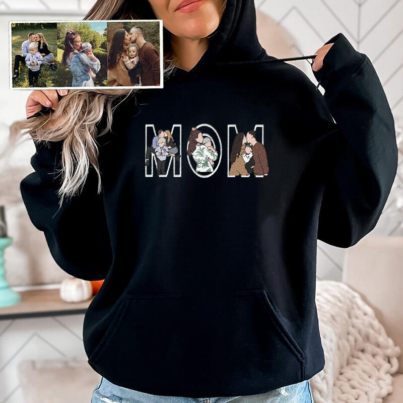 Personalized Hoodie Embroidered Custom Family Photos Design Attractive Gift for Mother's Day