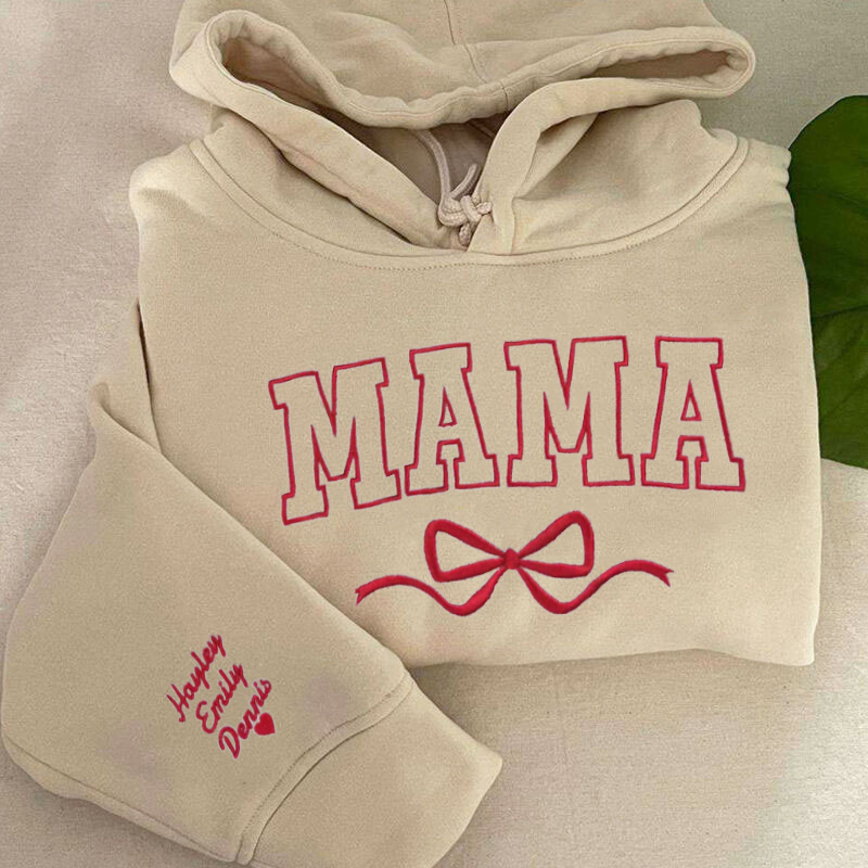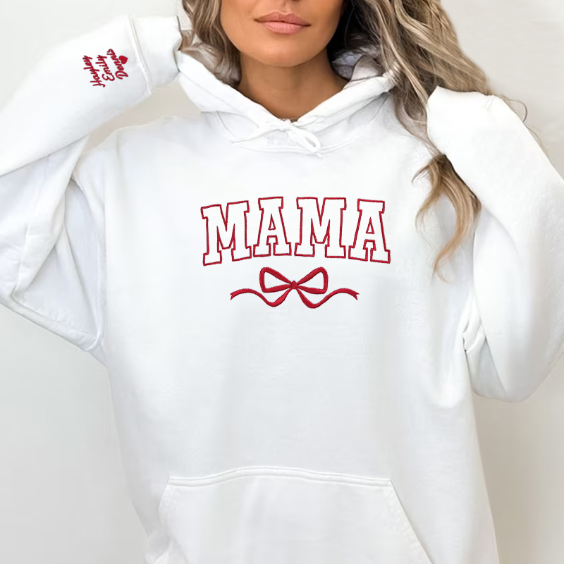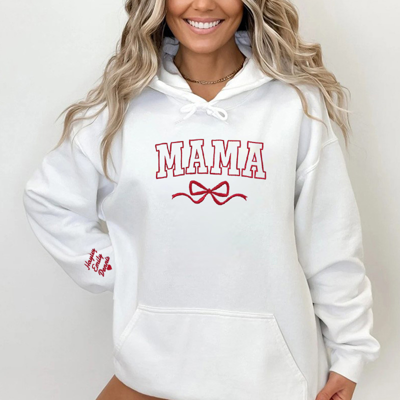 Personalized Hoodie Embroidered Custom Mama Nickname with Bow Design Exquisite Mother's Day Gift