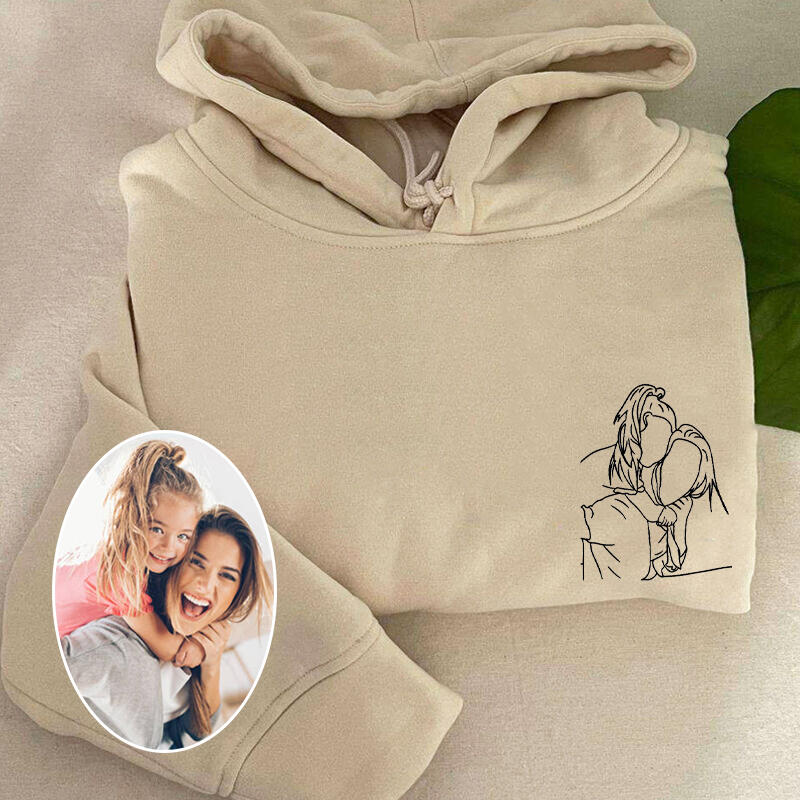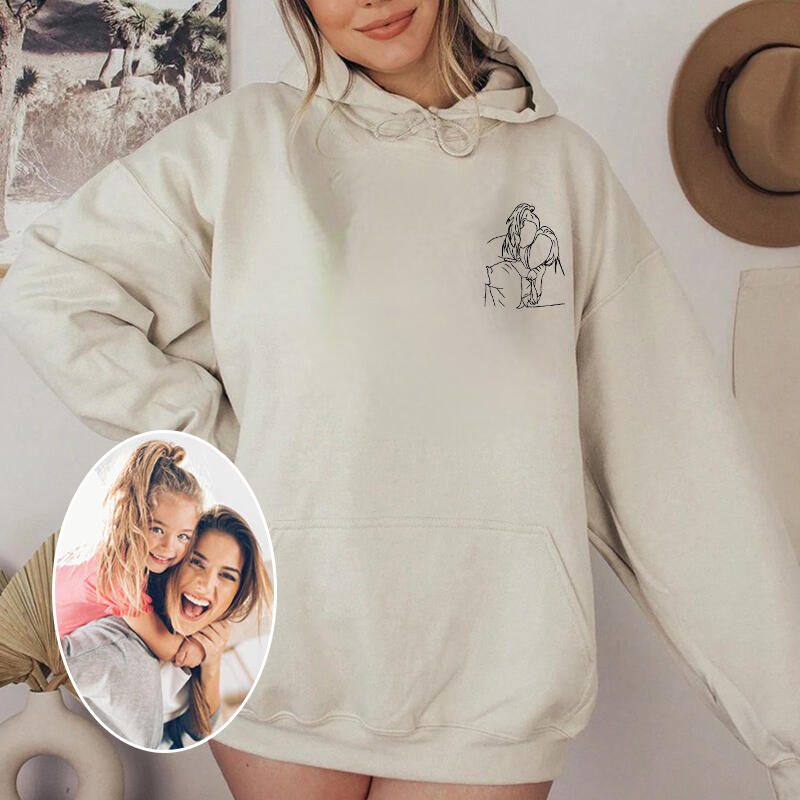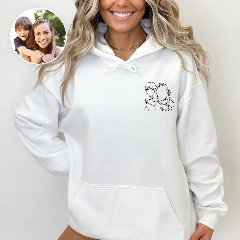 Personalized Hoodie Embroidered Custom Mom and Kids Photo Outline Design Perfect Gift for Mother's Day