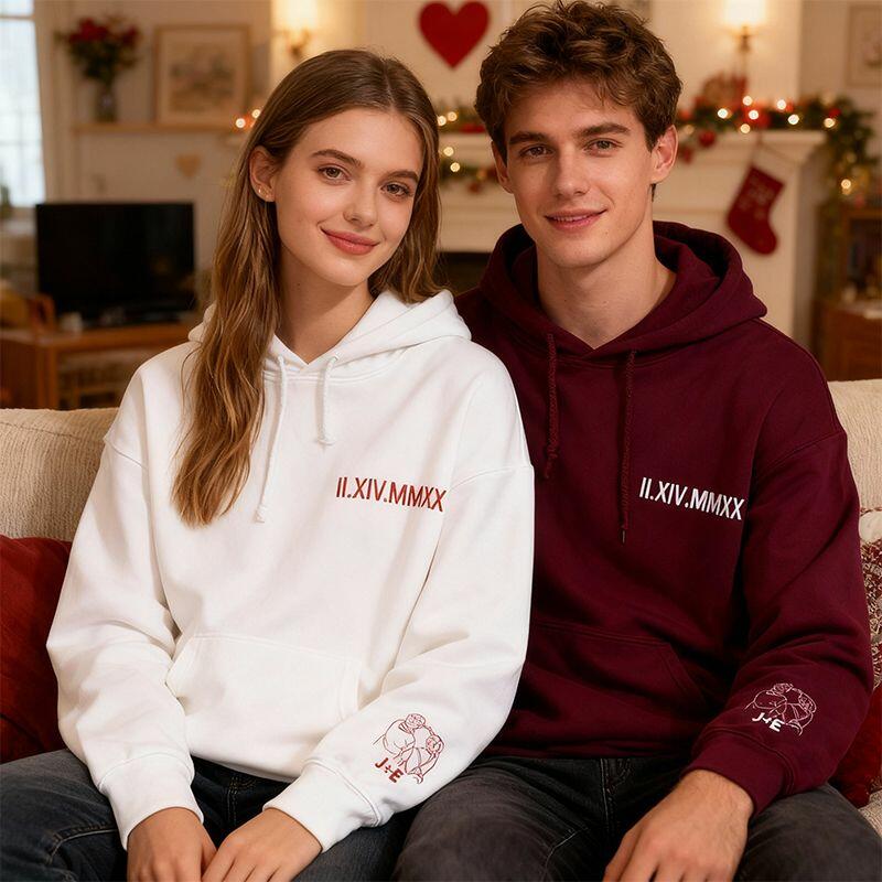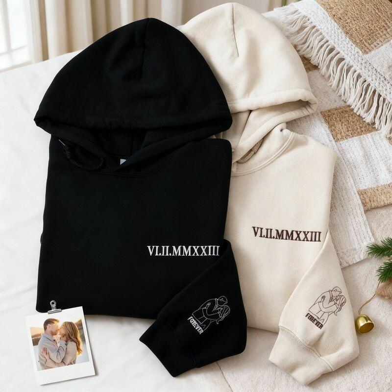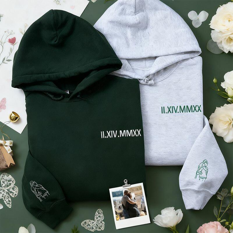 Personalized Hoodie Embroidered Custom Photo with Roman Numeral Date Design Gift for Lover's Anniversary
