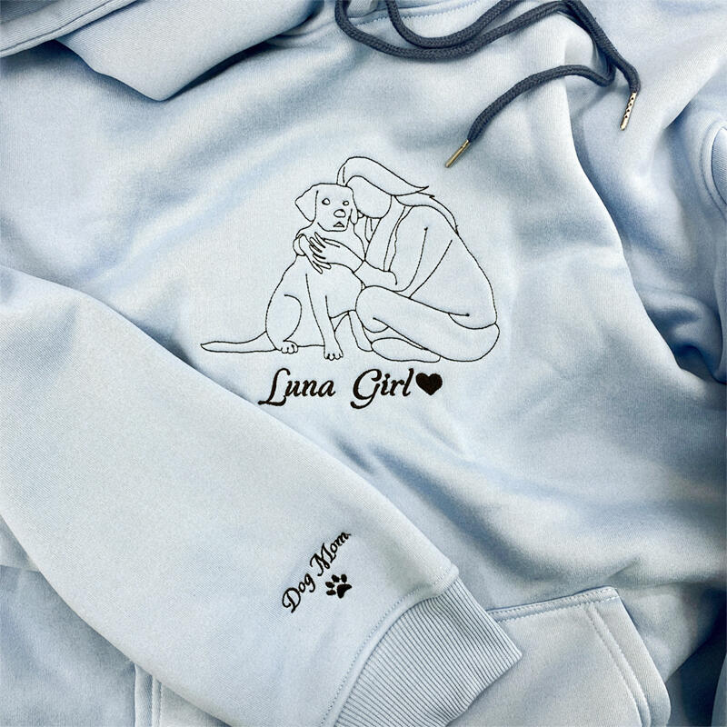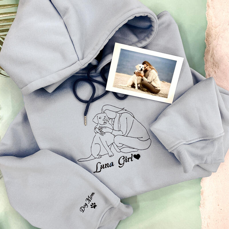 Personalized Hoodie Embroidered Custom Photo with Your Pet Line Design Unique Gift for Pet Lovers