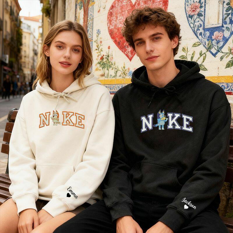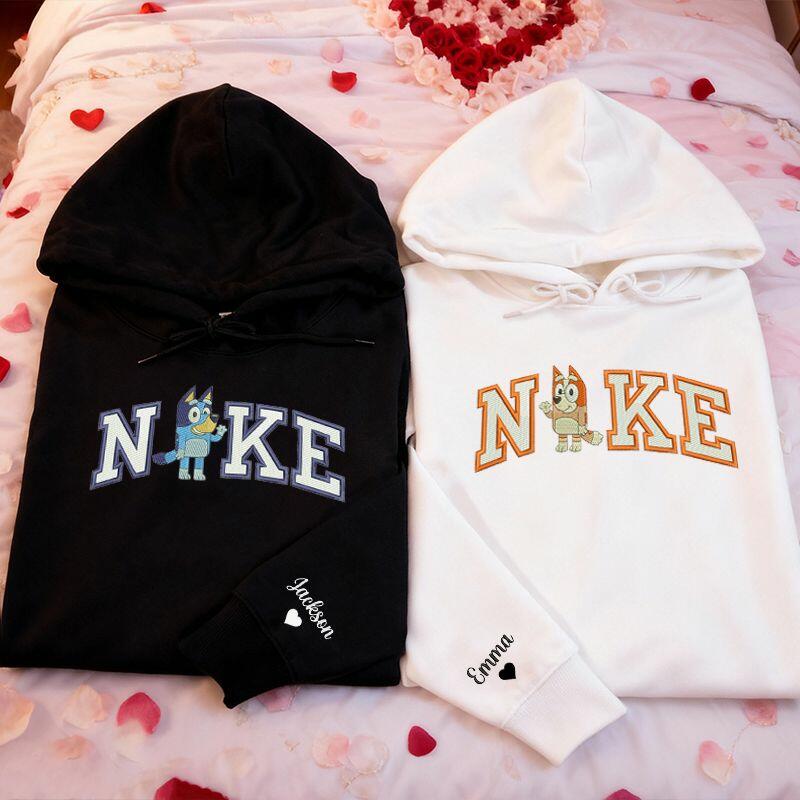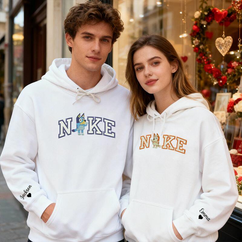 Personalized Hoodie Embroidered Dog Couple Cartoon Design Funny Valentine's Day Gift for Lovers