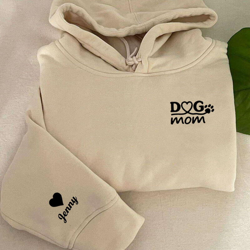 Personalized Hoodie Embroidered Dog Mom with Custom Name Attractive Gift for Pet Lover