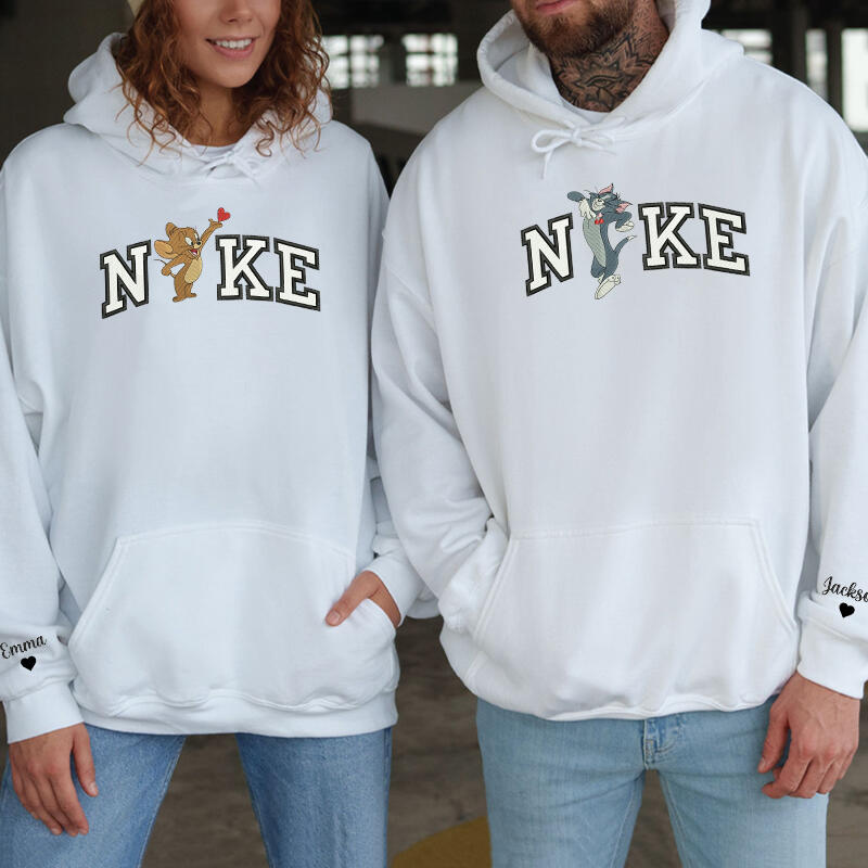 Personalized Hoodie Embroidered Embroidered Cartoon Tom and Jerry Design Great Valentine's Day Gift for Couples