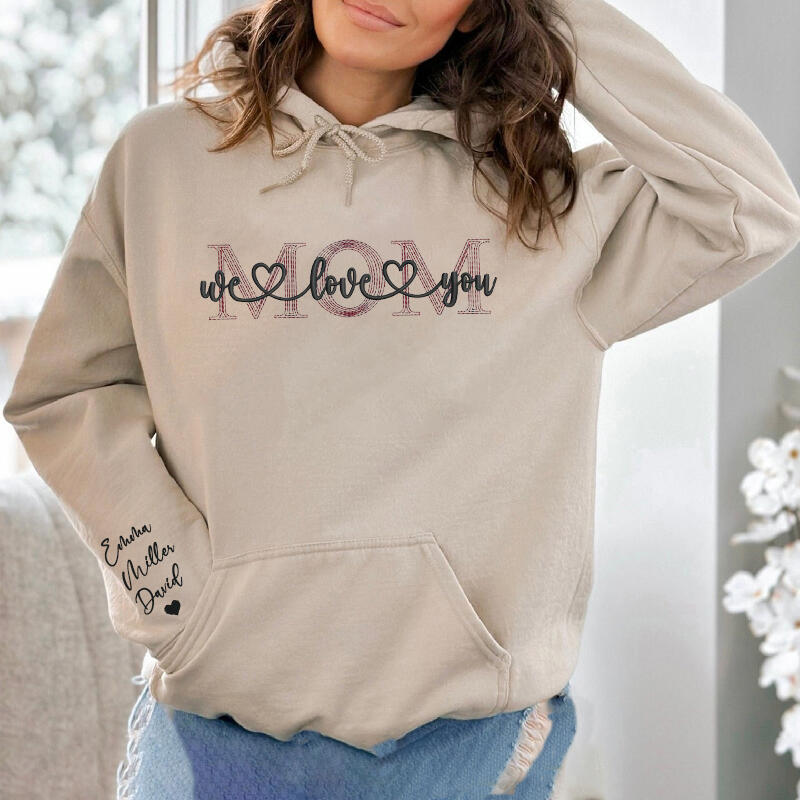 Personalized Hoodie Embroidered Mom We Love You with Custom Names Perfect Gift for Mother's Day