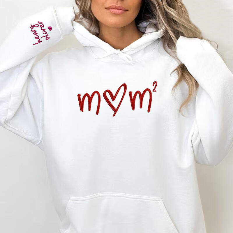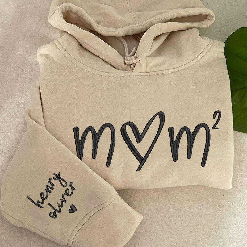 Personalized Hoodie Embroidered Mom with Kids Name on The Sleeve Design Perfect Mother's Day Gift