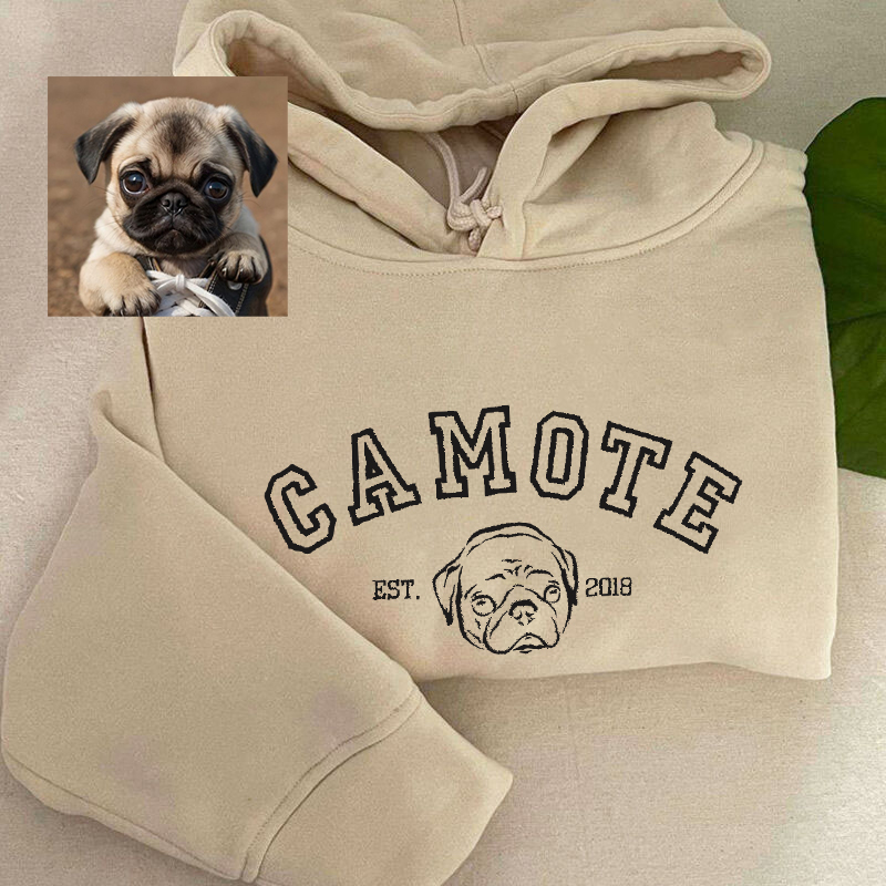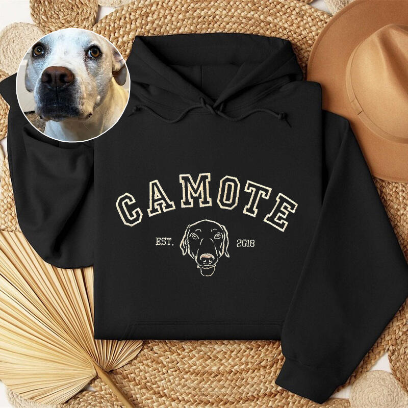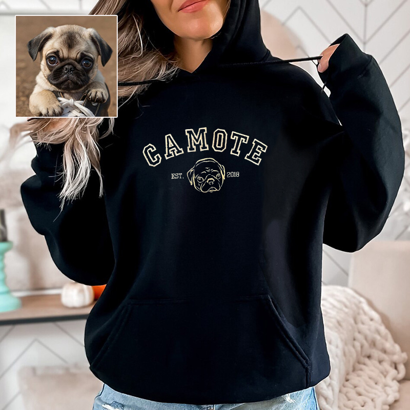Personalized Hoodie Embroidered Pet Head Line Photo with Custom Name Perfect Gift for Pet Lovers